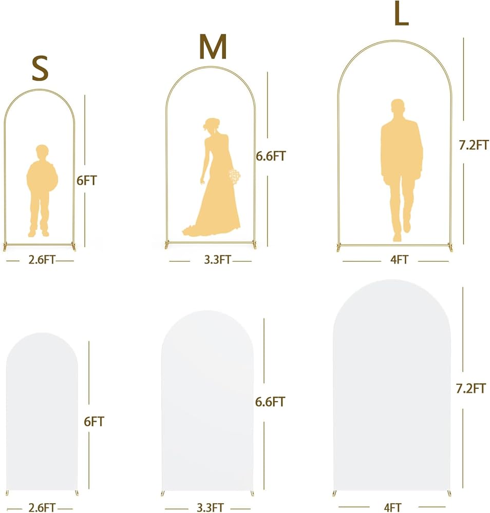 حامل خلفية قوس معدني وغطاء مجموعة من 3 - (7FT+6.9FT+6FT) حامل خلفية قوس الزفاف مع مجموعة غطاء لحفلات أعياد الميلاد وحفلات الزفاف وحفلات الزفاف وحفلات استقبال المولود الجديد