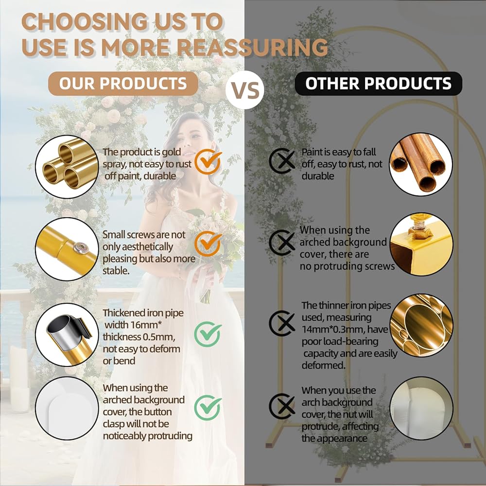 • الاستخدام متعدد الوظائف: مجموعة إطار خلفية القوس المعدني تأتي في مجموعة متنوعة من الأحجام (6/6.6/7.2 قدم). مناسبة لحفلات الزفاف وحفلات أعياد الميلاد ومعمودية الأطفال وغيرها من المناسبات ، إضافة الأناقة والسحر إلى أنشطتك