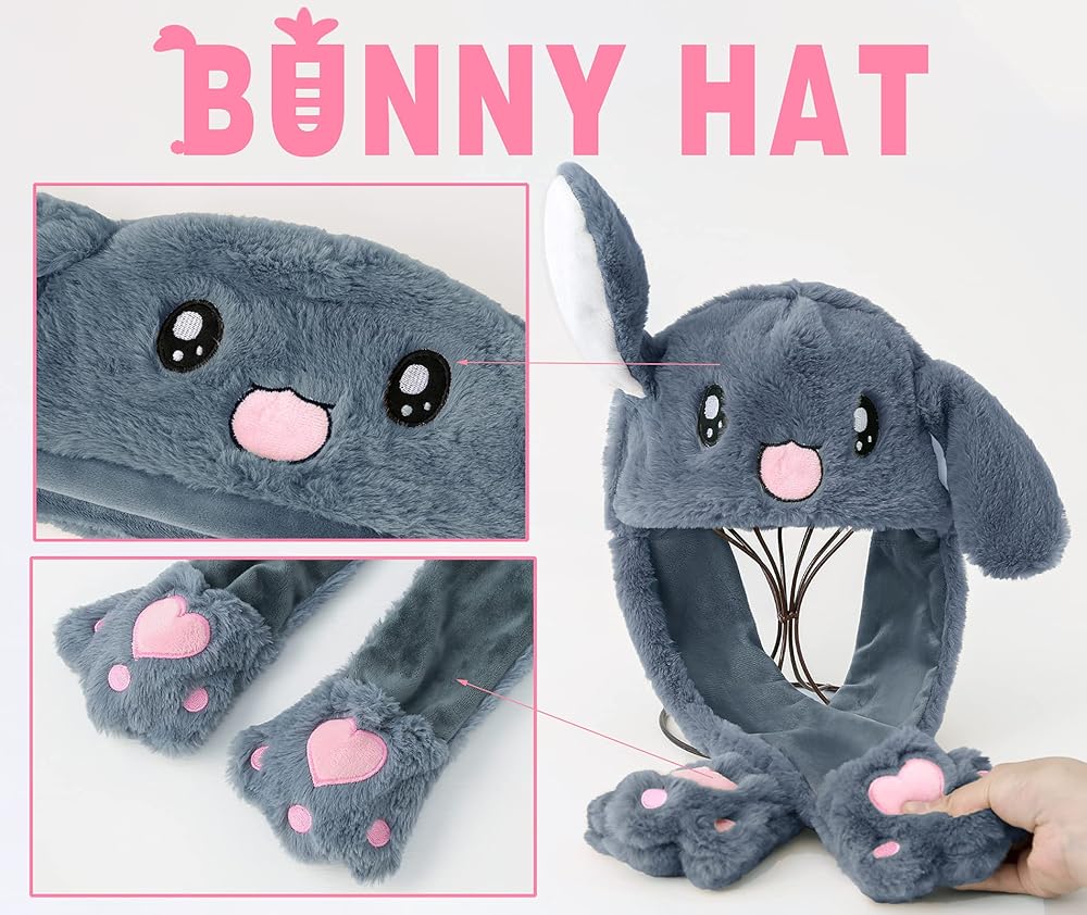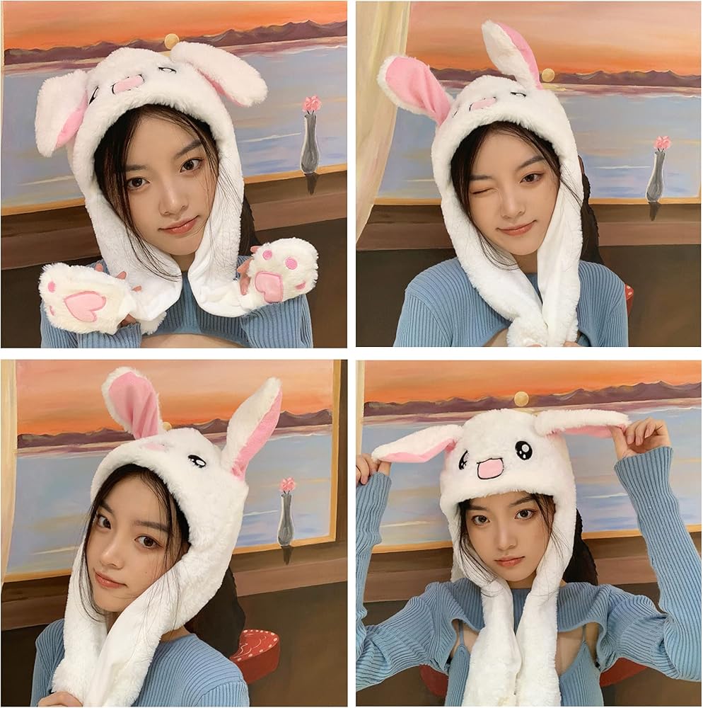 Loiahoer قبعة الأرنب آذان متحركة، الضغط على قبعة أرنب الكفوف سيجعل الأذنين تتحرك، هدايا مبتكرة مضحكة للنساء والفتيات