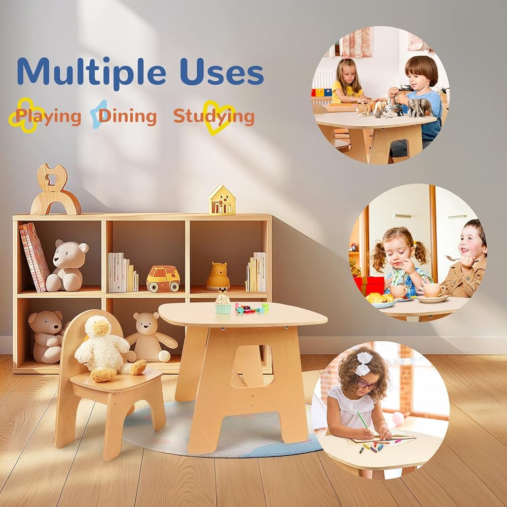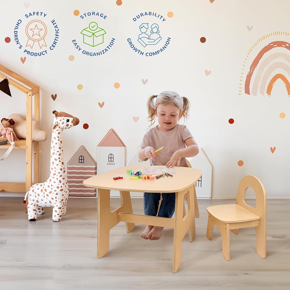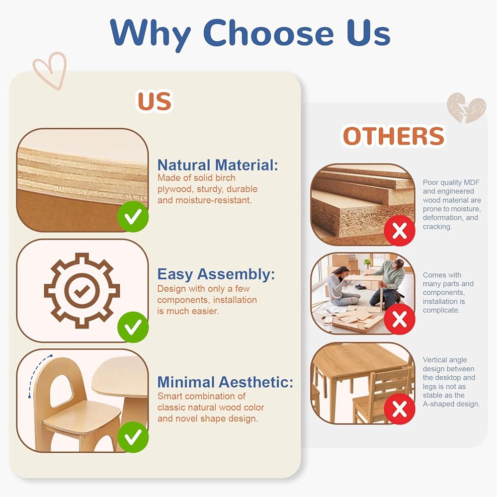 المواد القوية والدعم المستقر: يتكون هيكل الخشب من الخشب الصلب عالي الجودة ، مما يجعله خيارًا مثاليًا لأثاث الأطفال المتين. تبقي الأوساد الصلبة الصلبة وملصقات القدم غير المنقولة الطاولة في مكانها أثناء إضافة ثبات إضافي.