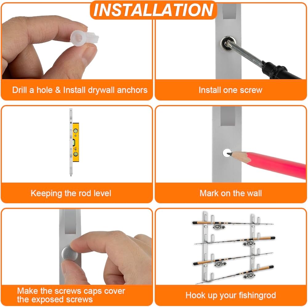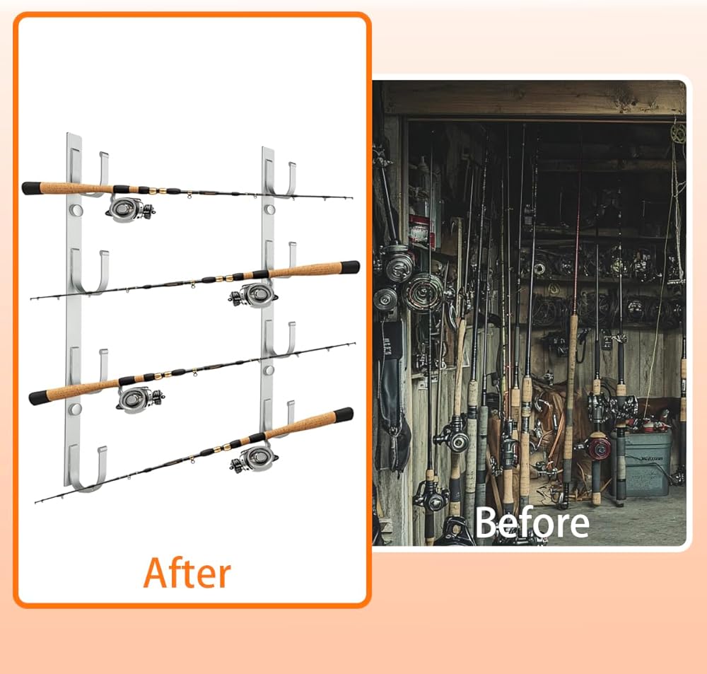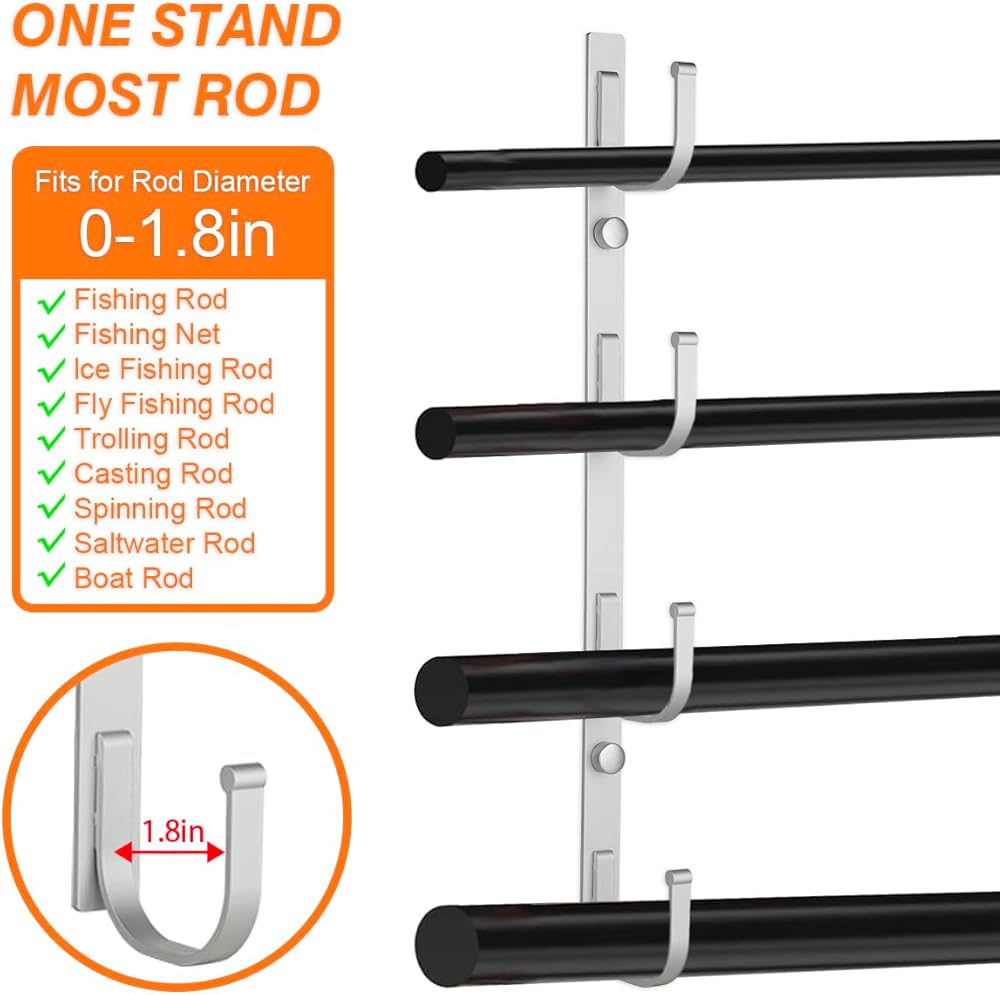 Fit 8 Rods or Combos: With a versatile design that accommodates most rod types. Our fishing rod racks can hold 8 rods and combos including saltwater, spinning, casting, and trolling rods. No more fishing rods leaning against the garage wall!