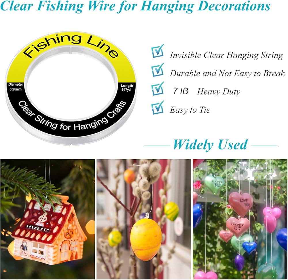 1.SIZE: You will get 750 ft of clear fishing line, long enough to provide enough material for a variety of projects, can be used for holiday party supplies decorations, hanging ornaments, and beaded jewelry making a variety of craft projects