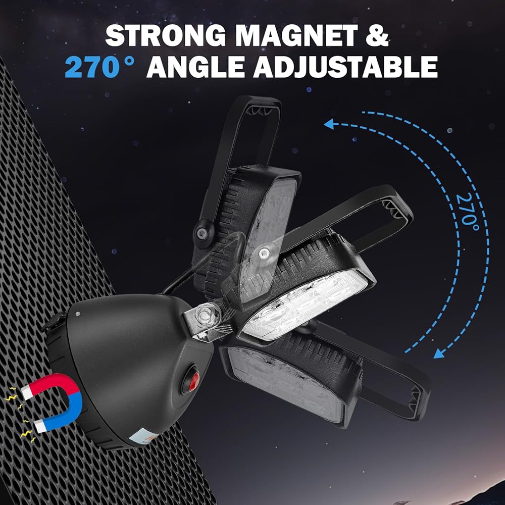 قاعدة مغناطيسية قوية: تضمن أربعة مغناطيسات قوية أن يبقى الضوء بشكل آمن على أي سطح معدني ، ويوفر الراحة الخالية من اليدين. البناء المتيح: يتكون السكن من الألومنيوم المصبوب ، مع غطاء مصباح البولي كربونات وعدسة PMMA لمزيد من المتانة.