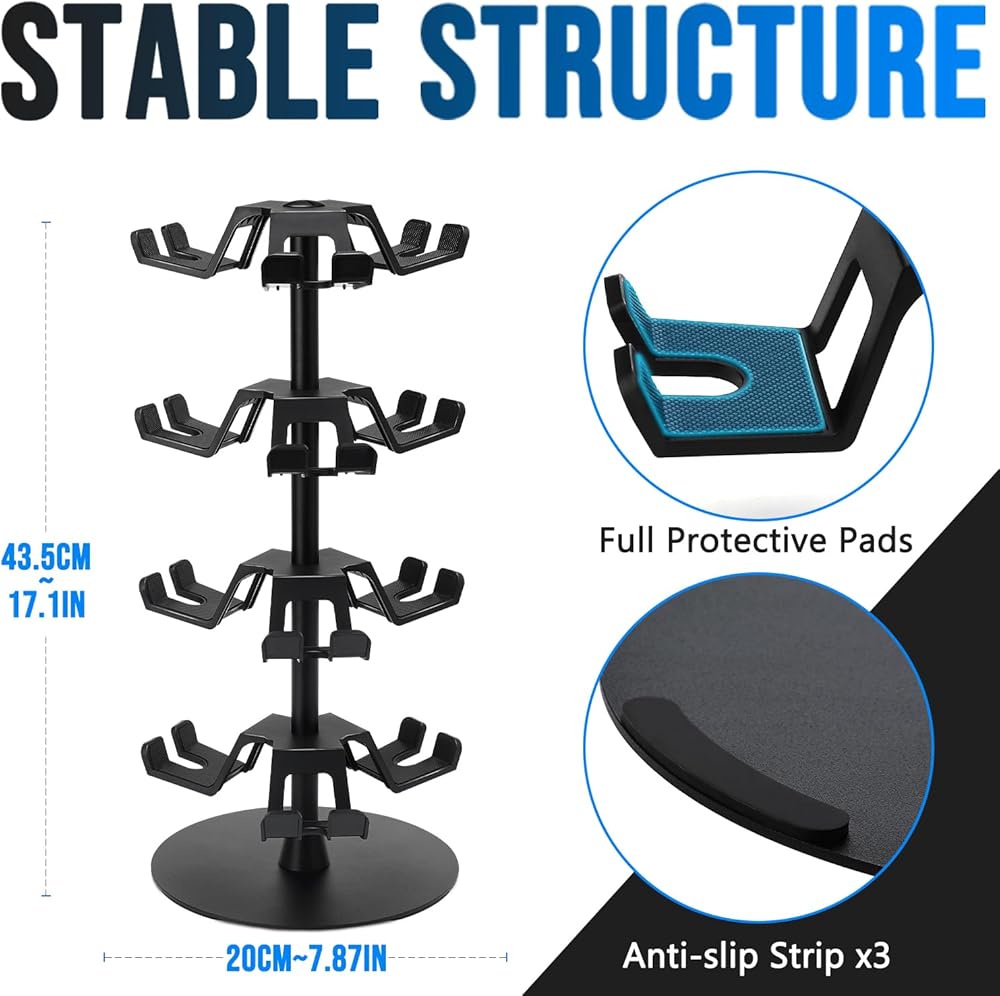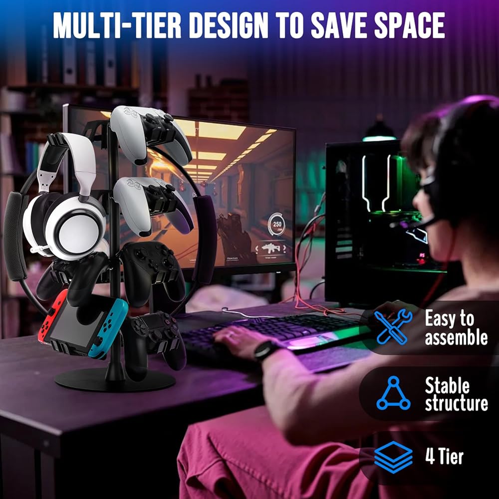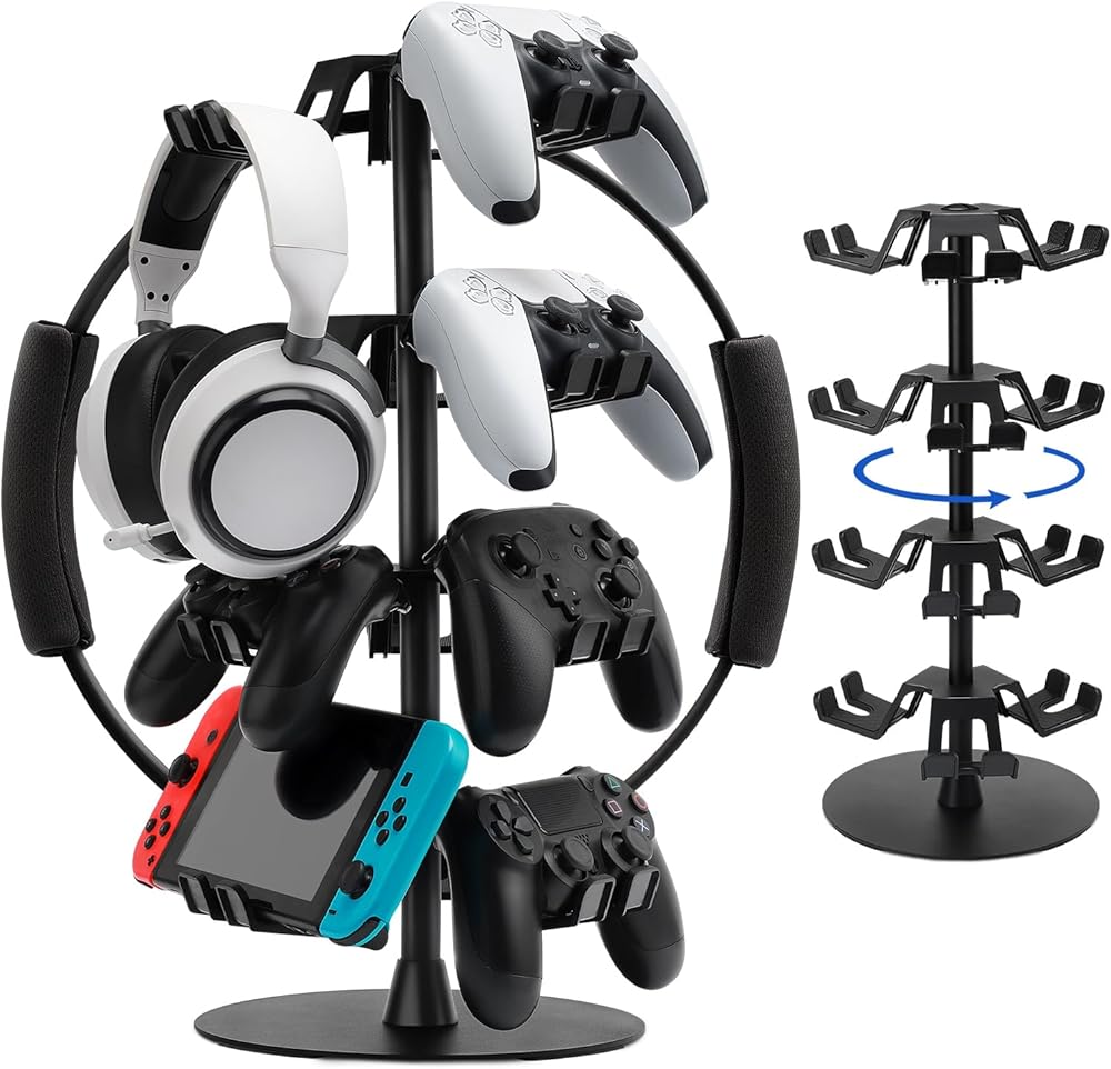 يحمل حامل وحدة تحكم عالمي وحامل سماعات الرأس للتبديل ، PS5 ، PS4 ، Series Series X | S-حامل وحدة تحكم قابلة للدوار 4 مستويات ، وحامل سماعات الرأس ، ويحمل ما يصل إلى 12 وحدة تحكم-أشياء للألعاب