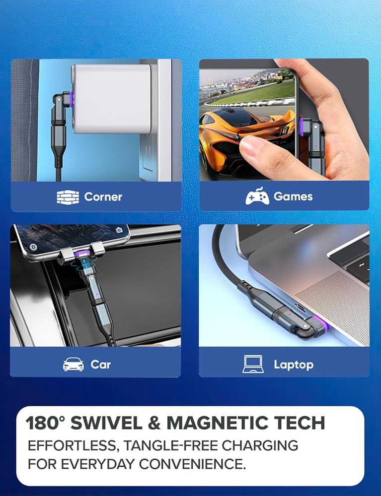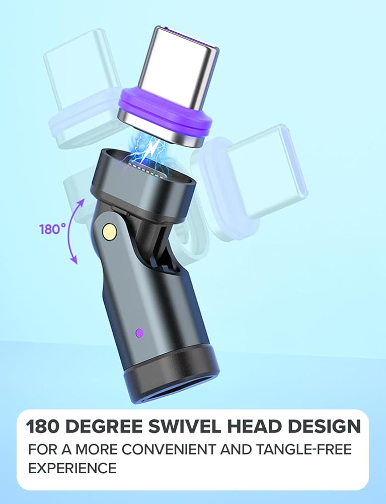 • ✅【180° Swivel Design for Ultimate Flexibility】 – Charge your device at any angle with the innovative swivel head, allowing a full 180-degree rotation. Whether you prefer a straight or right-angle USBC connection, this adapter adjusts to your setup for a more convenient and tangle-free experience.