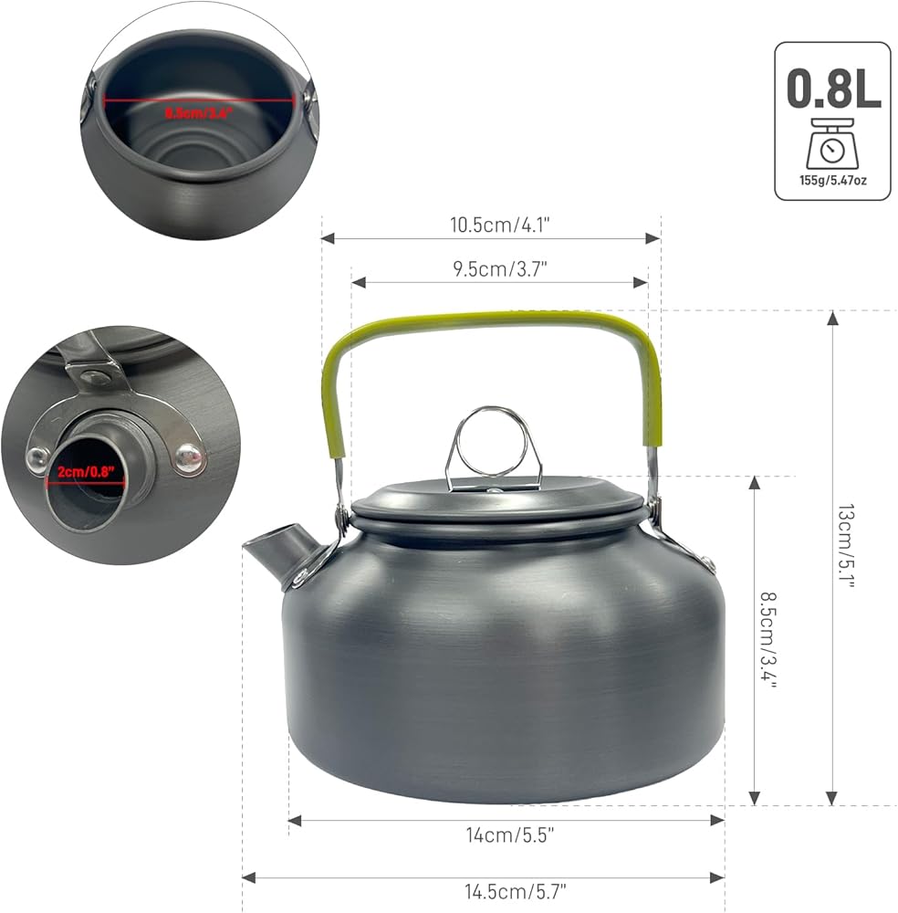 غلاية من الدرجة الغذائية: هذه غلاية التخييم مصنوعة من الألمنيوم الصلب المؤسس ، مما يجعل غلاية التخييم لديها مقاومة أعلى للخدش واستقرارها من الألومينا العادية. يقوم الألومنيوم المصحوب بصعوبة بالحرارة بسرعة ، ويقف على درجة حرارة عالية ، مقاومة للتآكل ، خالية من الصدأ ، مصممة لتستمر. مقبض مطلي بالسيليكون محدثة لتأثير كبير مضاد للحار.