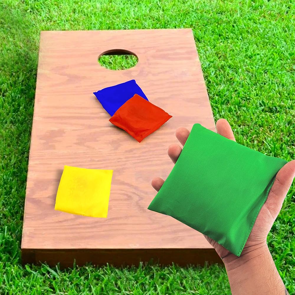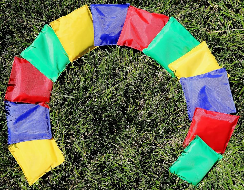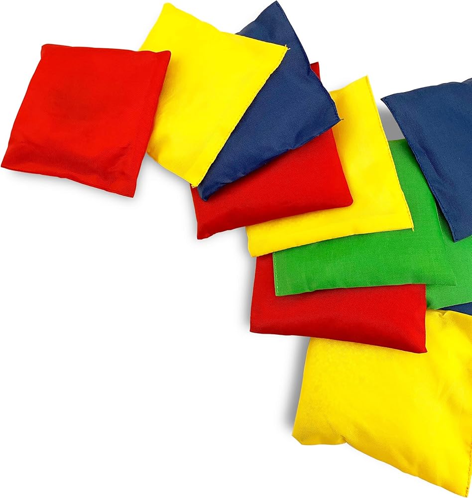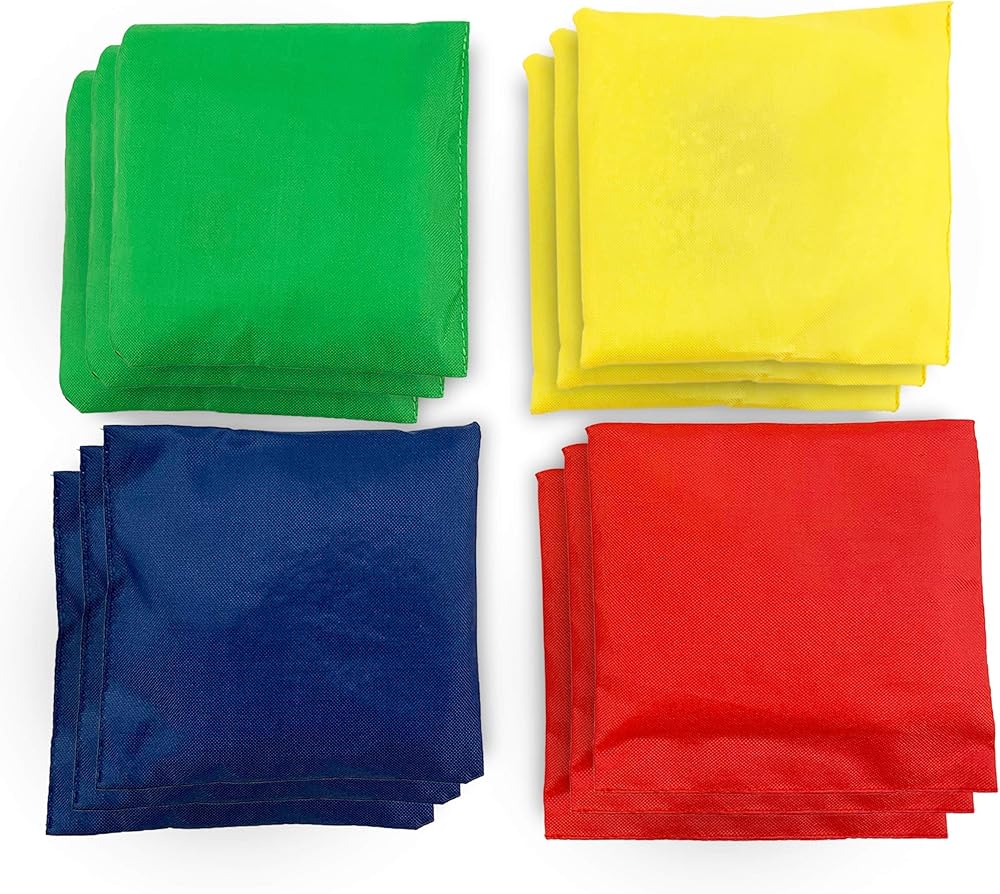 12 كيس من القماش ذو اللون الأساسي مثالية لجميع ألعاب الرمي وحفر الذرة سواء في الداخل أو الخارج مع العائلة والأصدقاء - خذ فترات راحة تشتد الحاجة إليها من الهواتف وأجهزة التلفزيون وأجهزة الكمبيوتر للحصول على بعض المرح الجيد معًا.