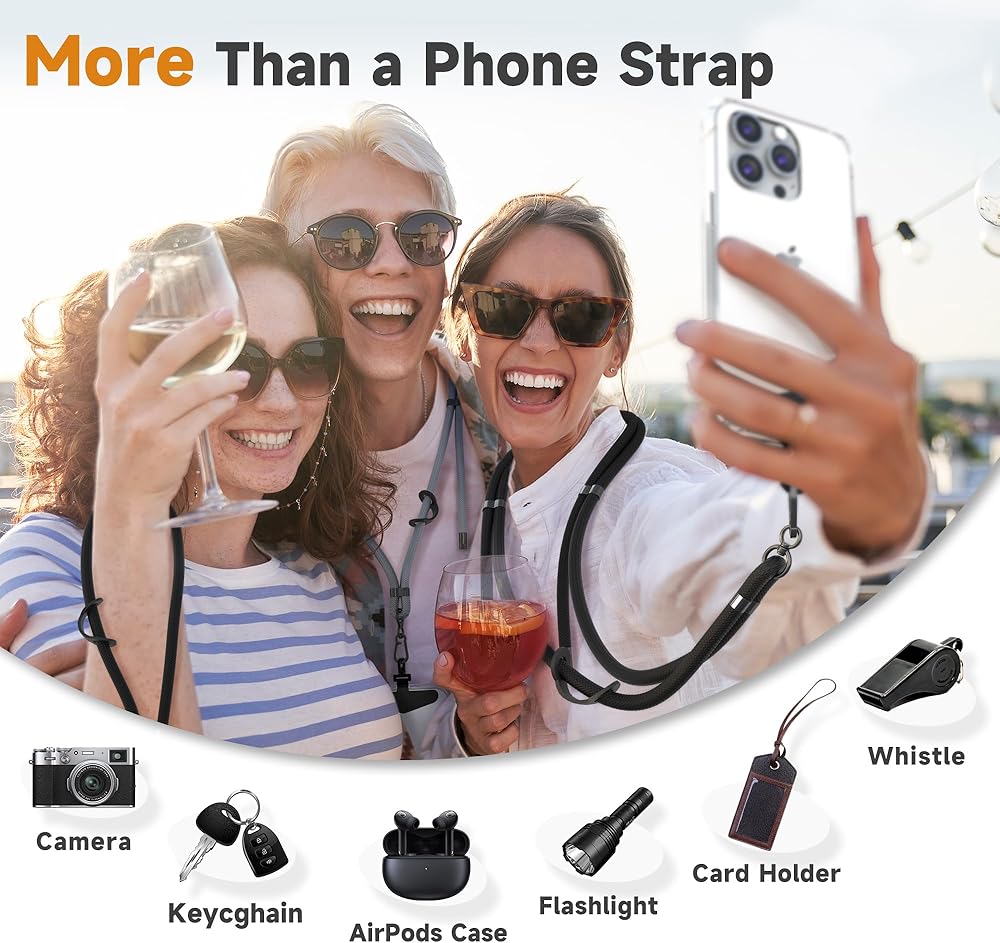 • Anti-Theft & Drop Protection: This cell phone lanyard for around the neck keeps your phone within sight and prevents accidental drops or loss—perfect for crowded festivals, commuting, hiking, or daily use