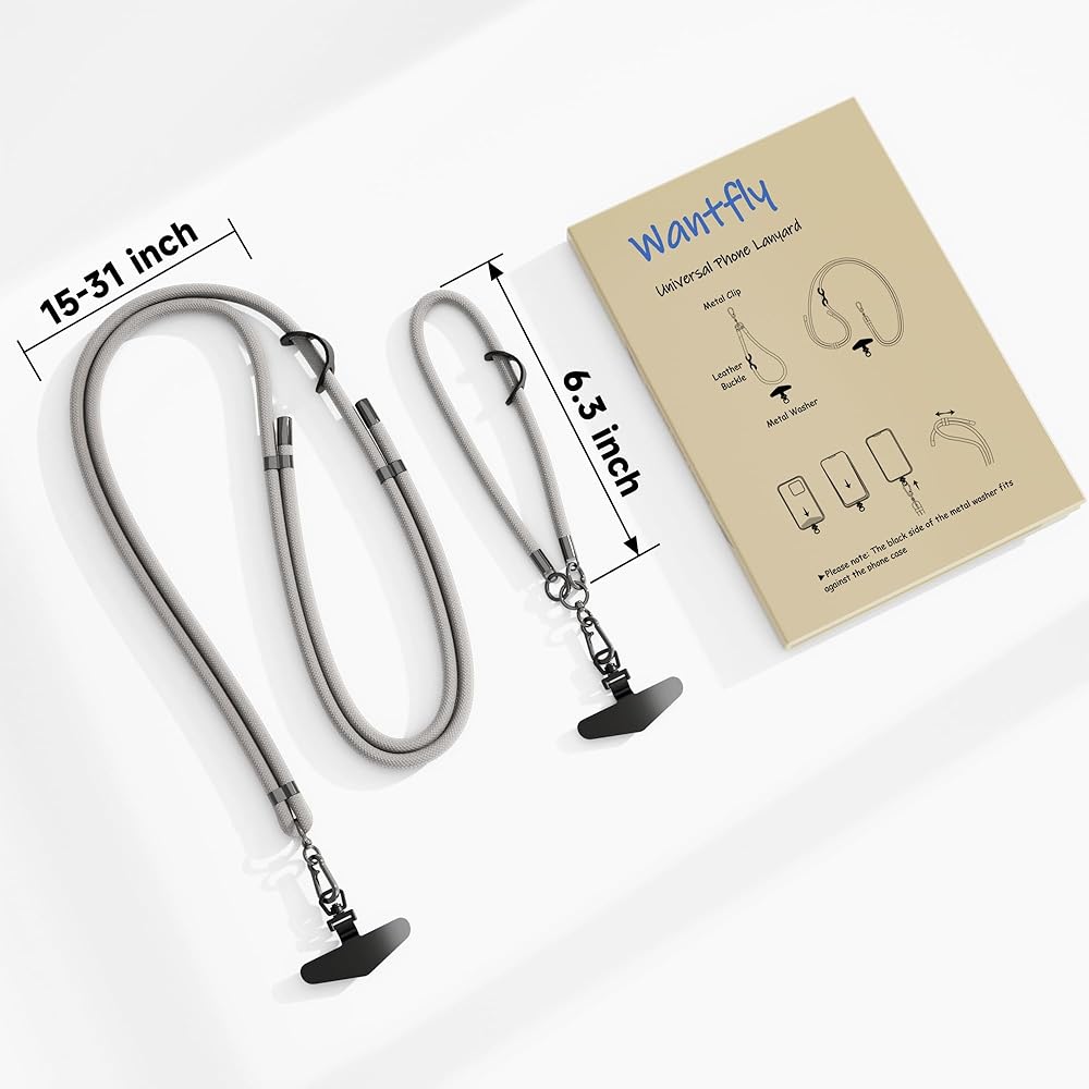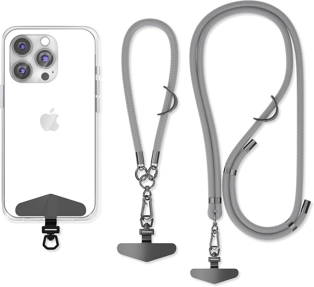 • 2-Pack 8mm Thick Phone Lanyard Set: This set includes an adjustable crossbody phone lanyard (15-30 inches) and a fixed wrist strap, perfect for carrying your smartphone, camera, keys, or other travel essentials.Featuring an additional leather loop, our set isn't just for your phone. Hang your sunglasses, AirPods, or other small essentials effortlessly