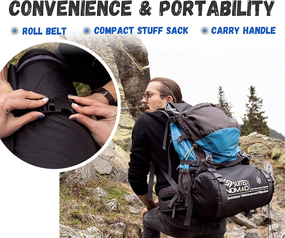 SUITEDNOMAD gives you the most protective and warming multi use waterproof outdoor blanket. Comparing to other foldable stadium blankets, the lined insulation oversized cushion comes guaranteed for life thanks to the best materials and a 3-layer all around seams. Designed with advice from active soccer moms and loving pet owners – We've tested it in over 100 different scenarios (backpacking, military, extremely low temperature, heavy rain, messy homes, etc.) to ensure that we got you fully covered. Why choose the SuitedNomad large packable blanket? 100% lighteweight – nothing spill through the water & windproof outside shield side and it protects you or your couch from any wet situations. Multifunctionality at its finest – don't just use it as a campfire blanket, but also as a concert mat, at games, beach blanket, pet couch cover, mattress protector, sporting events, tactical warming gear, disaster essentials or car seat hooded travel poncho. Packable design – you can easily fold it and carry it in the bag included – attach it to your backpack or place it in the car emergency kit without taking too much space. No one likes the wind – the impermeable manta side blocks any wind, snow or cooling rain, while the heat reflective layer keeps you warm during the entire football, hockey, softball or para baseball game. A plush soft touch – we all love being cozy and that's why the plush side makes you want to snuggle because the cold and wind can't touch you. It's time to enjoy all your favourite outdoor essential activities with zero stress – Add the 100% best waterproof protection tarp to cart and discover how many ways it will improve your traveler life.