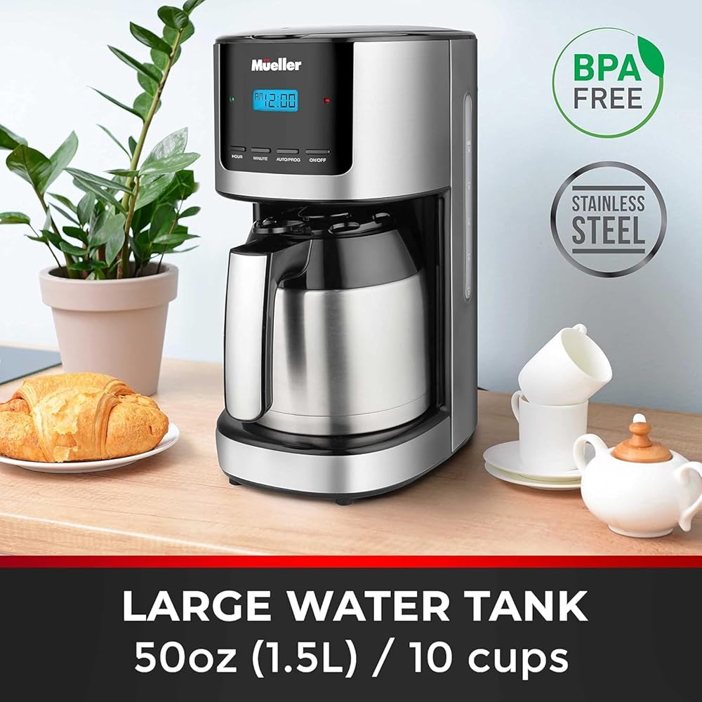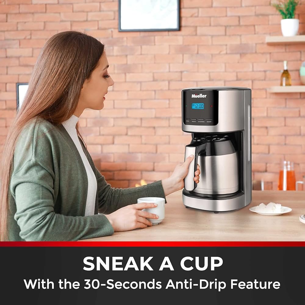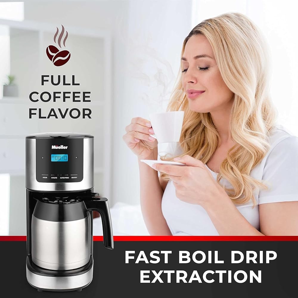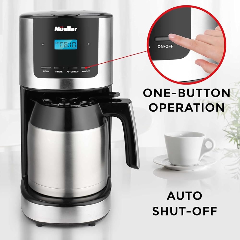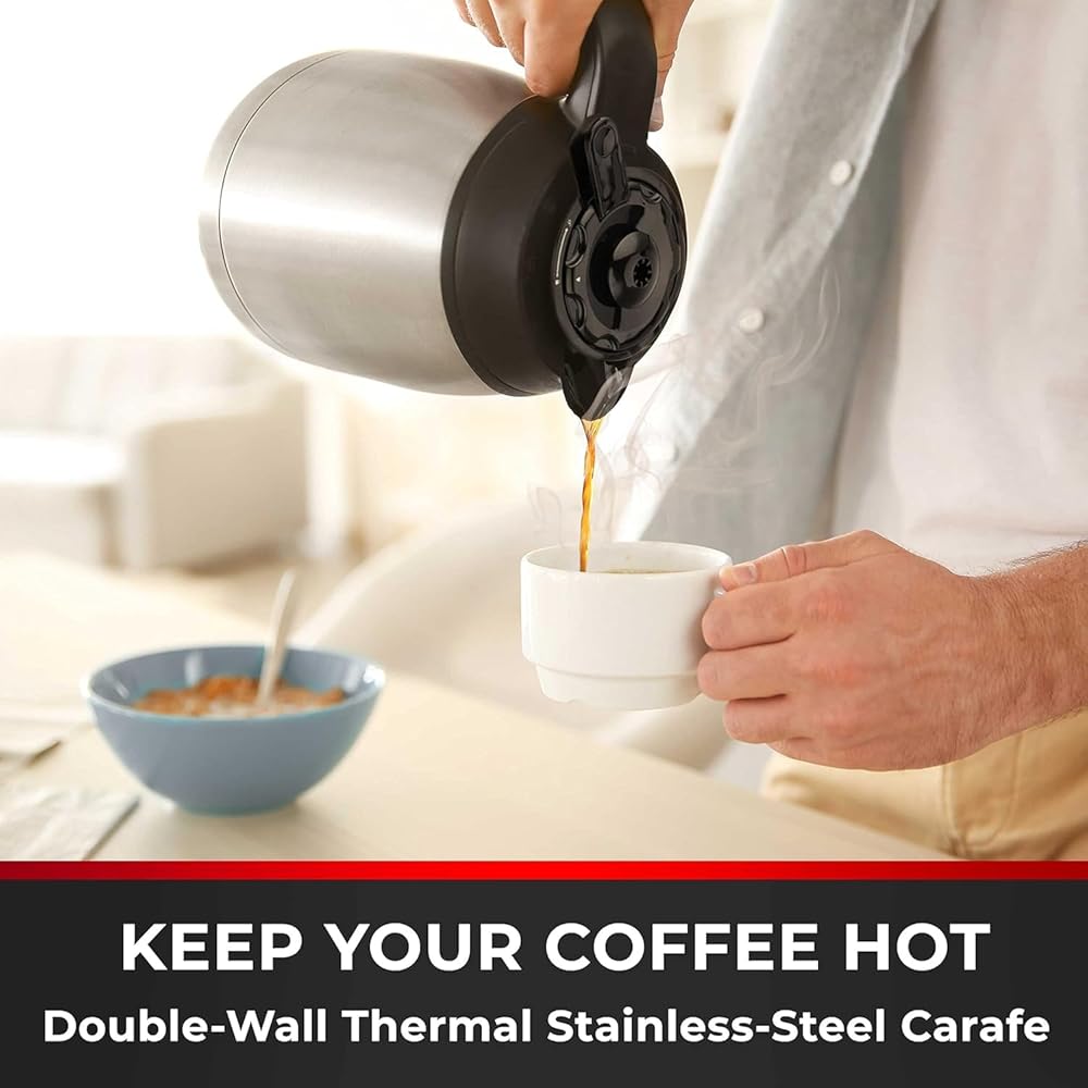 Keep Your Coffee Hot - The coffee maker with thermal carafe gives you double insulated warmth. After the brewing process, your stainless steel coffee maker will automatically shut off but your carafe will keep your coffee warm to enjoy. Plus, there's no need to be cautious as the carafe is shatter-resistant!