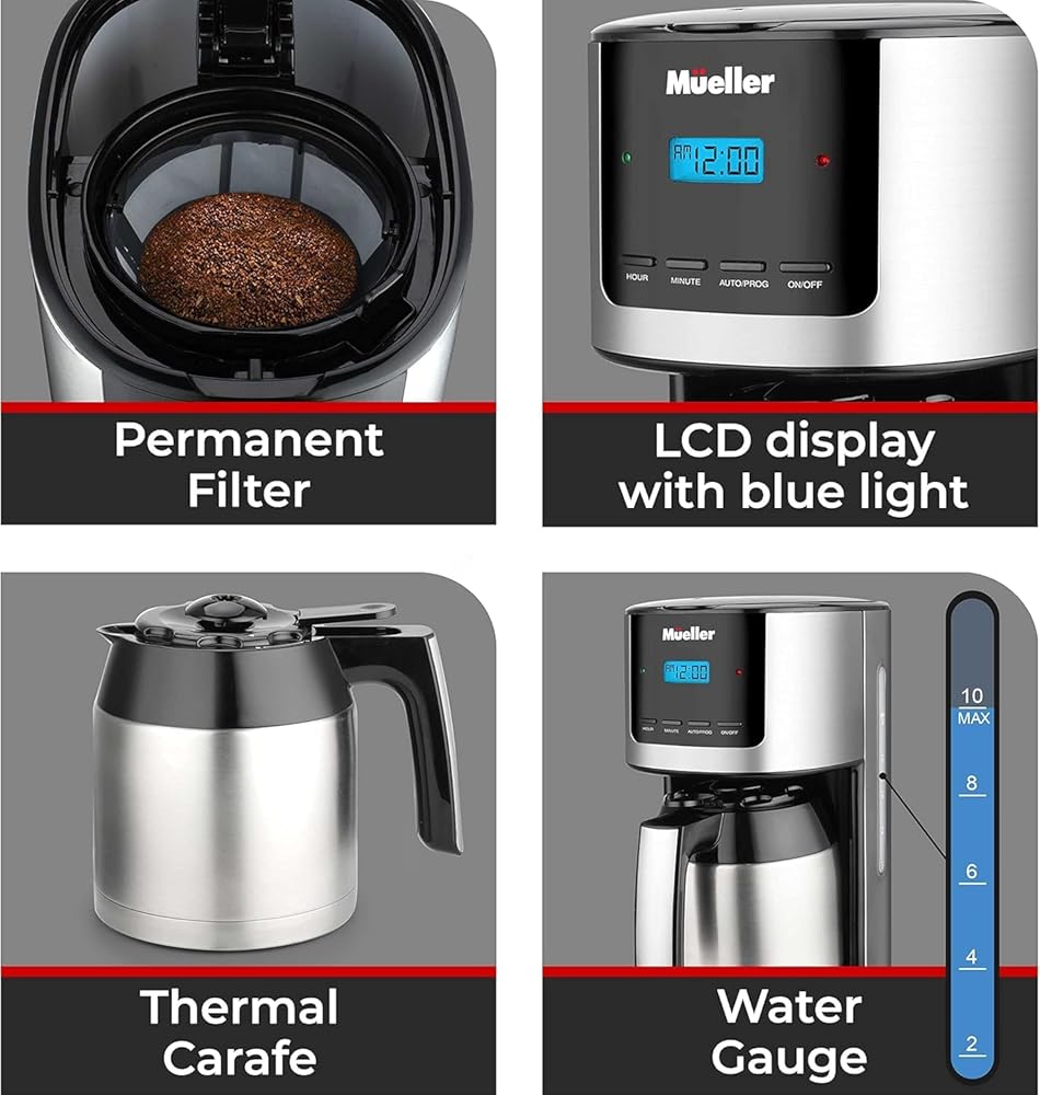 Simple Interface And Permanent Filter – Equipped with a large LCD display and quick touch programming function, the drip coffee maker is super easy to use. It has one permanent coffee filter so you don't have to spend money on paper coffee filters.