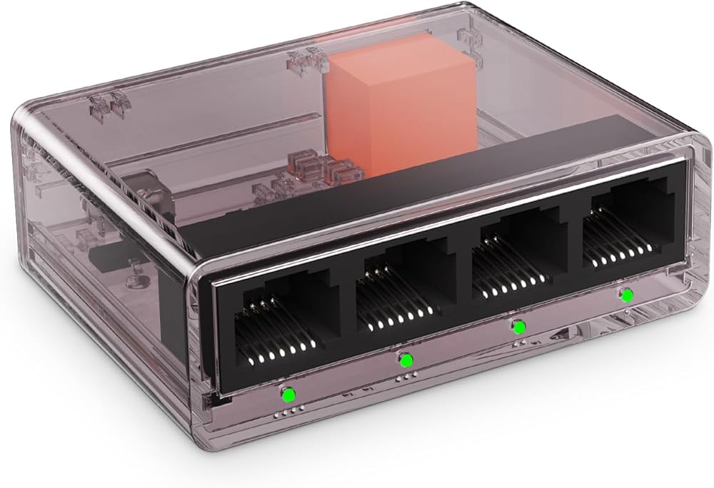 موزع جيجابت إيثرنت من 1 إلى 4 منافذ، محول LAN عالي السرعة 1000 ميجابت في الثانية مع كابل USB، محور شبكة يولينكا بلاستيكي صغير، التوصيل والتشغيل لجهاز التوجيه والمودم والكمبيوتر الشخصي وكاميرا IP والطابعة والتلفزيون الذكي