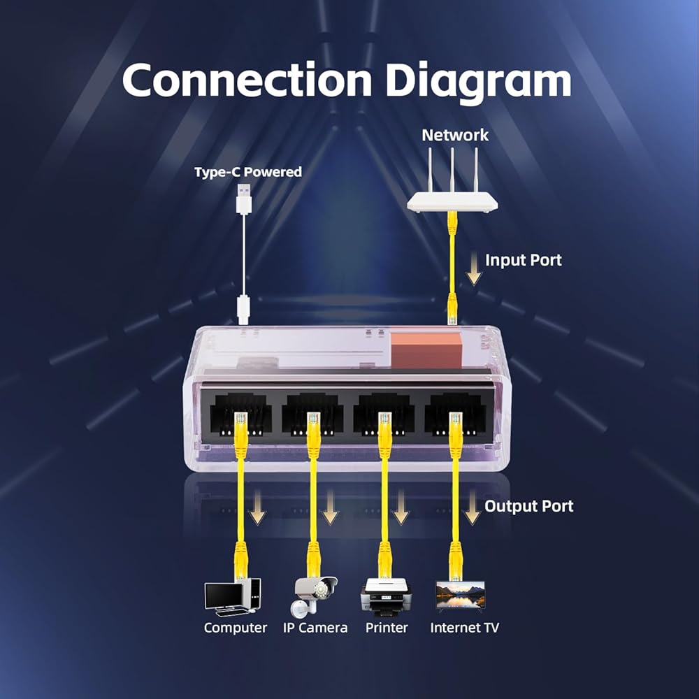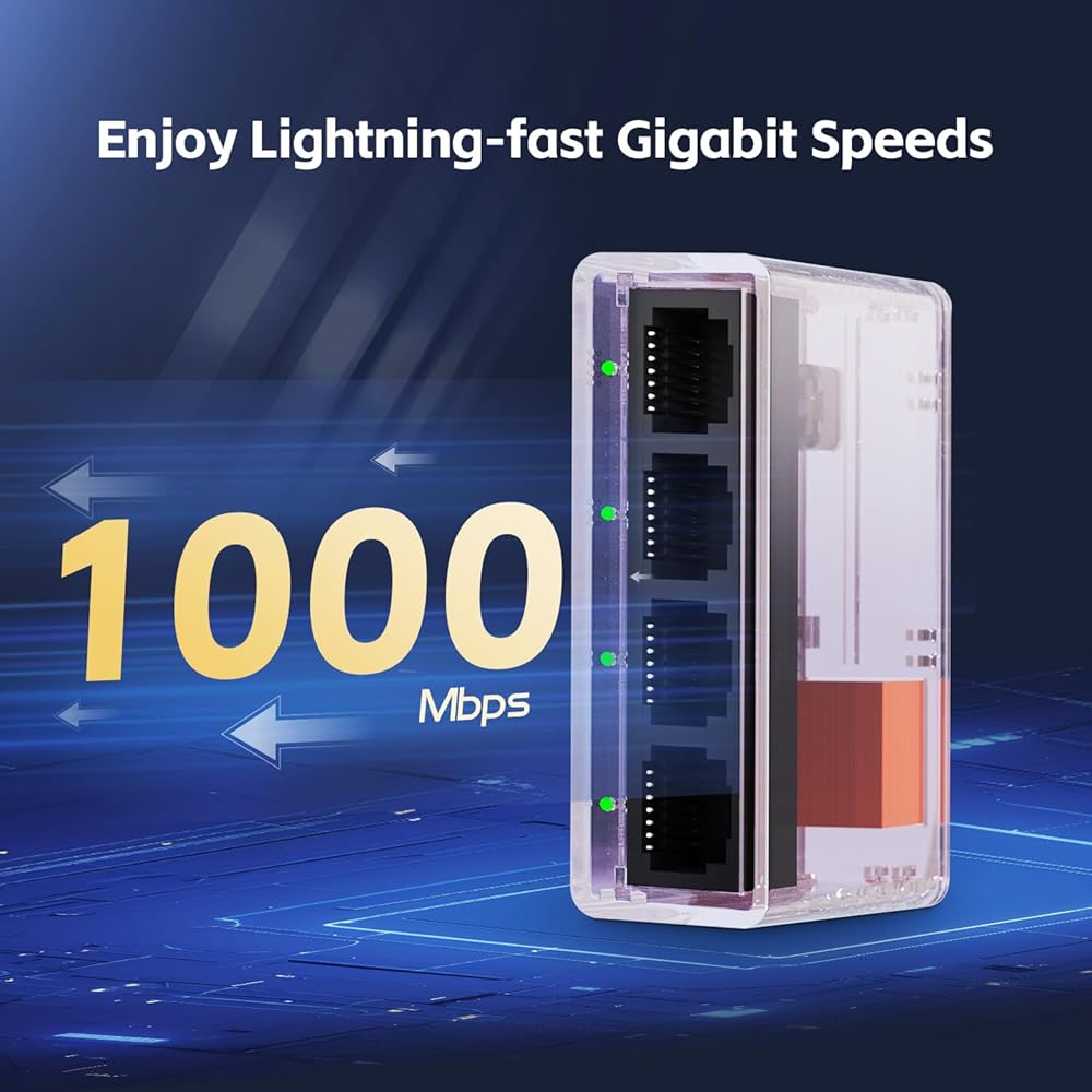 【Gigabit Ethernet Splitter】The network splitter includes 5 Gigabit ports, 1 in and 4 out, supports 10/100/1000Mbps rate adaptive. This high-performance splitter allows you to expand your network without need for additional cables.