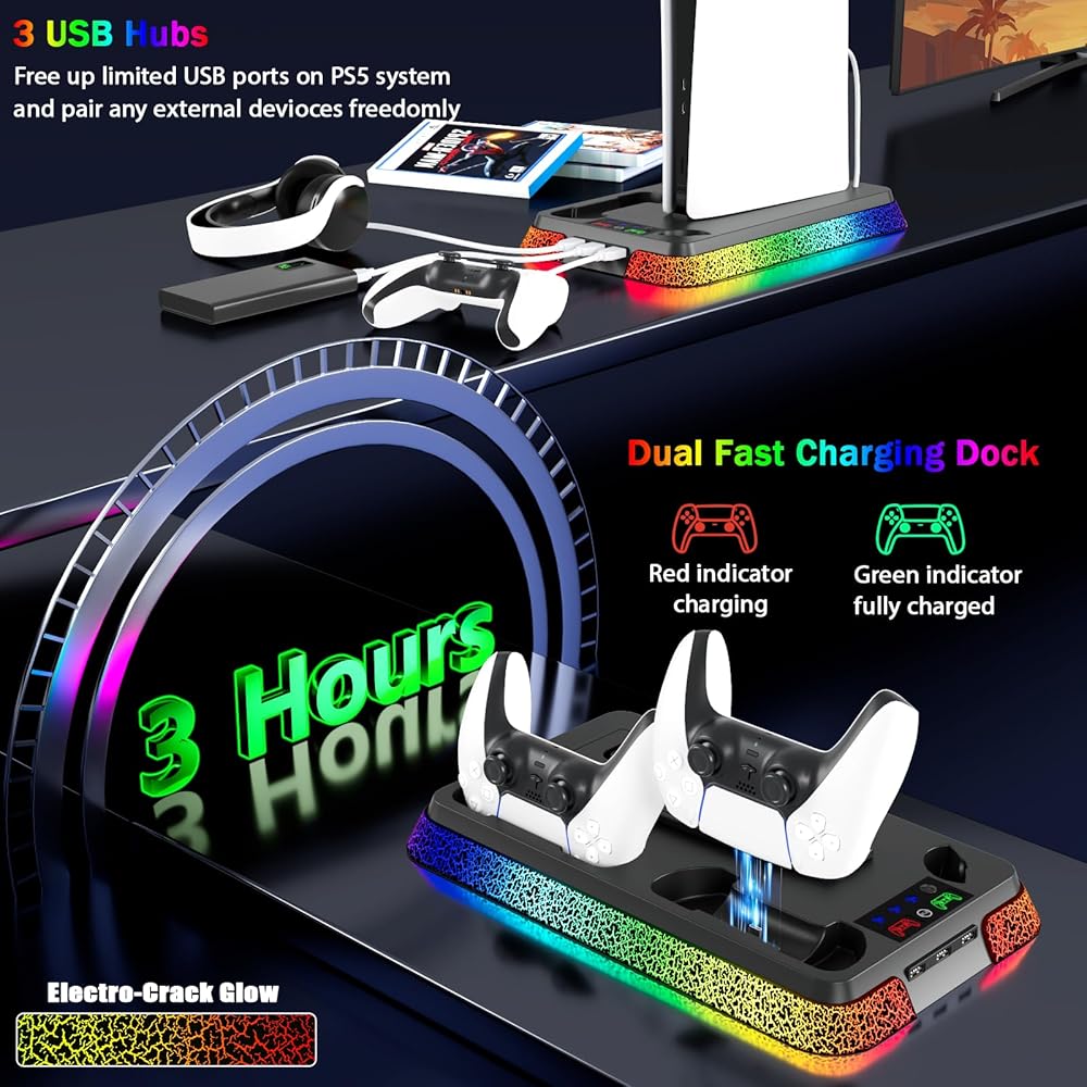 【شاحن وحدة تحكم PS5 المزدوجة وشحن سريع 3H】 مدعوم من وحدة التحكم PS5 أو مدعوم من محولات ≥5v/2a ، يستغرق موقف PS5 مع مروحة التبريد وشاحن وحدة التحكم PS5 3 ساعات فقط لشحن 2 PS5 وحدات تحكم بالكامل في وقت واحد. لا تقلق بشأن وحدة التحكم الميتة التي تؤثر على جلسات اللعبة الخاصة بك. تُظهر مؤشرات LED على قاعدة تبريد PS5 بوضوح سرعات المروحة وحالة الشحن الخاصة بملحقات وحدة التحكم PS5: الشحن الأحمر ؛ خضراء-مشحونة/الاستعداد. (غير مناسب لوحدة التحكم PS5 Edge)