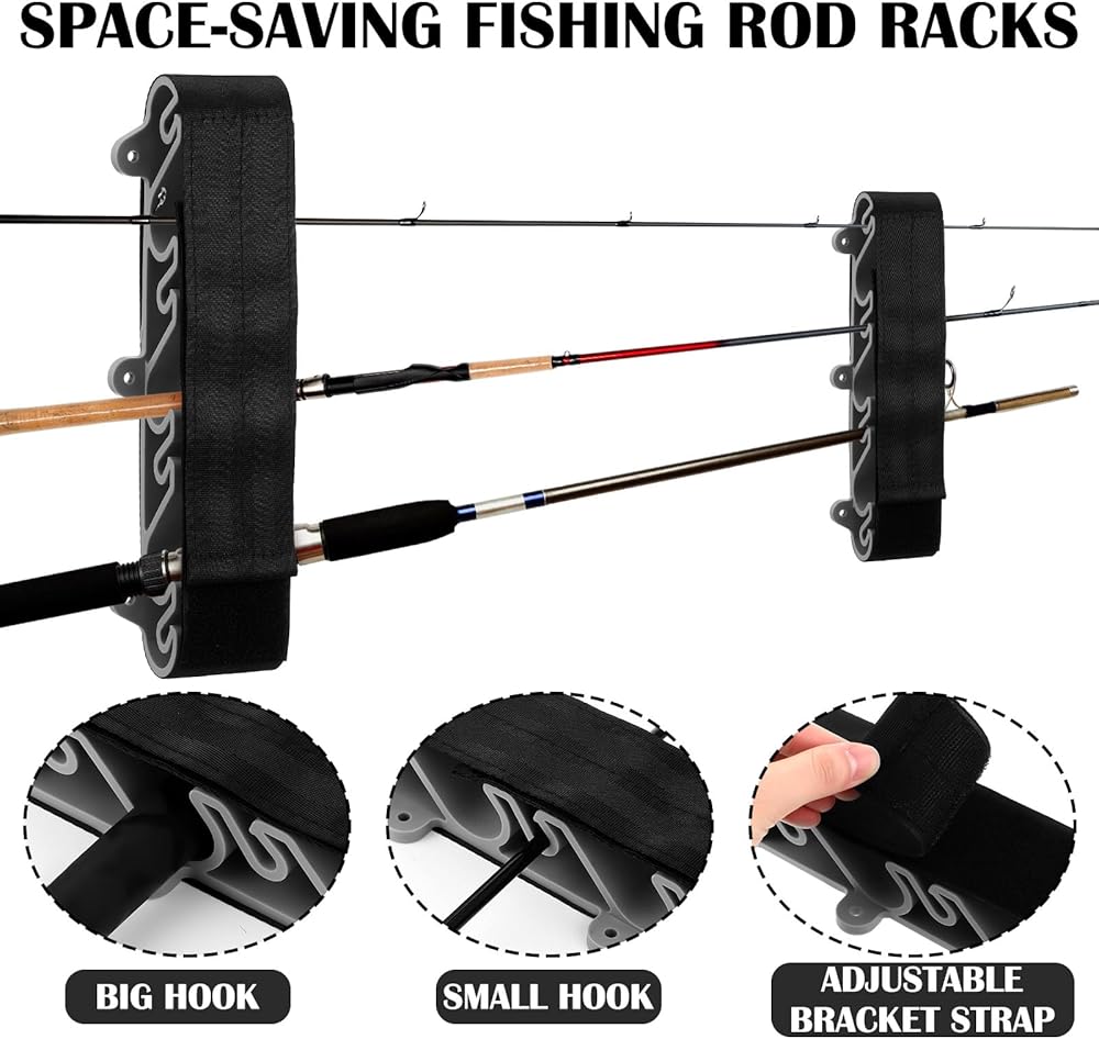 Easy to Use: our Fishing Rod Holder with Essential Fittings, a bag of nails and a bracket strap; Simply install the pegs into the fixing ports and the strap over the bracket and the installation is complete; With our boat rod holders, you can enjoy fishing anytime, anywhere