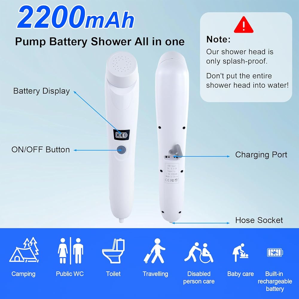 5 أوضاع ضغط قابلة للتعديل و 3 إعدادات رش - دش محمول للتخييم مع 5 أوضاع للضغط القابلة للتخصيص (4.6L/دقيقة إلى 9.6 لتر/دقيقة) و 3 إعدادات الرش ، تتكيف مضخة المياه المحمولة هذه مع أي مهمة ، من شطف لطيف إلى رشاشات قوية. مثالي للتخييم وتنظيف الحيوانات الأليفة وغسل السيارات.