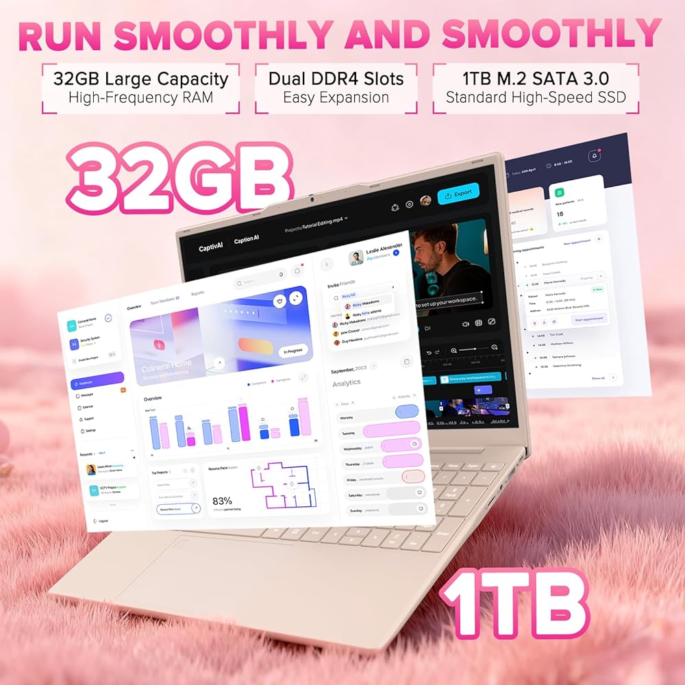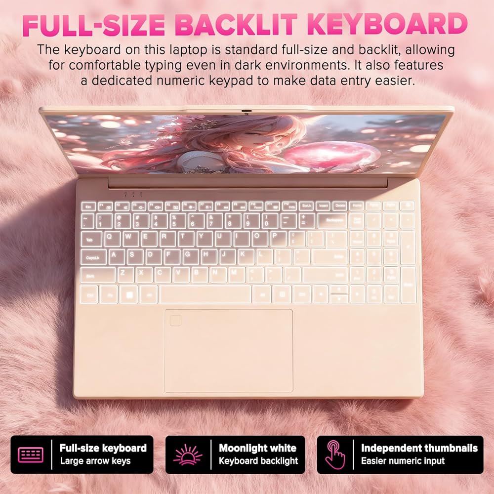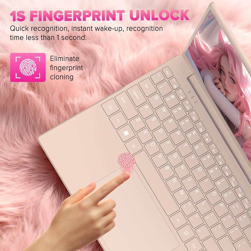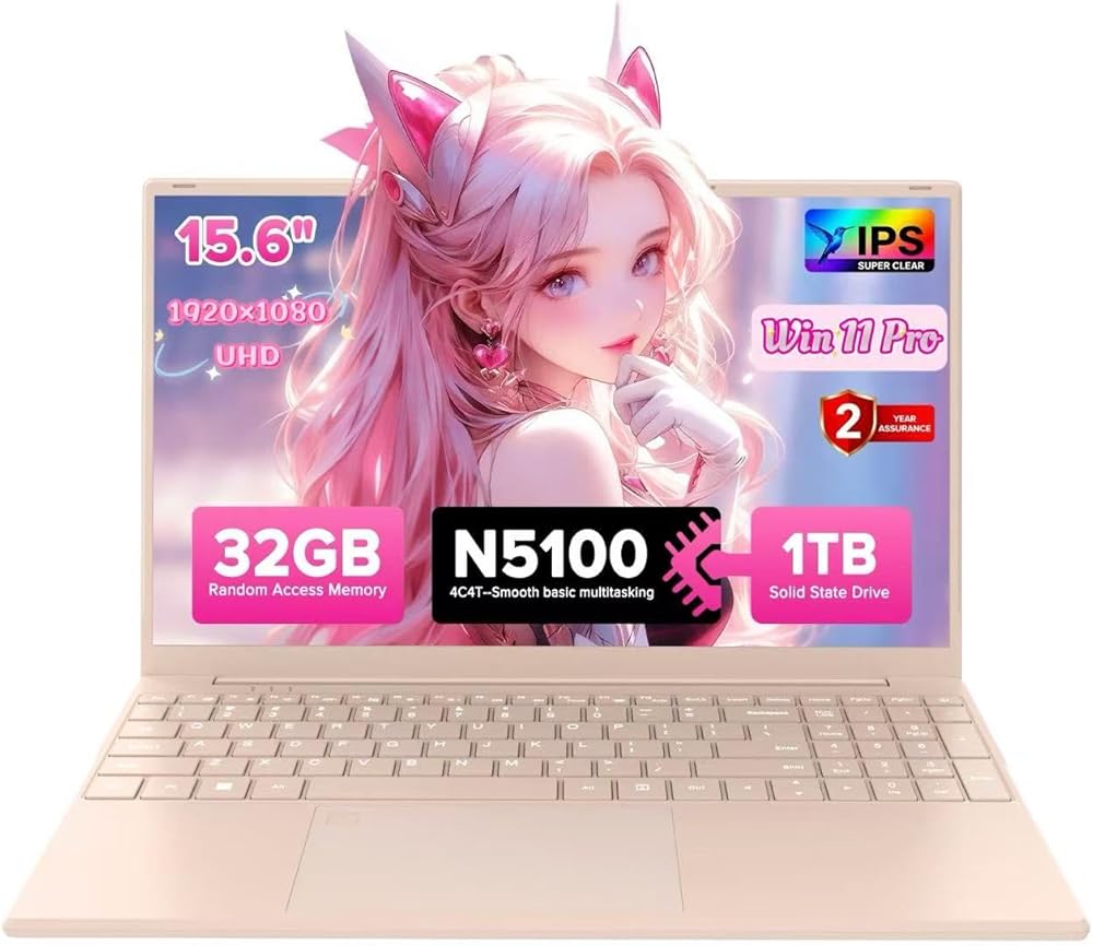 كمبيوتر محمول وردي اللون خفيف الوزن، ويندوز 11 برو، معالج رباعي النواة، شاشة 15.6 بوصة FHD IPS، لوحة مفاتيح بإضاءة خلفية، كاميرا الخصوصية، قارئ بصمات الأصابع، USB 3.0، HDMI، لدراسة العمل التجاري، ذاكرة وصول عشوائي 32 جيجابايت، 1 تيرابايت SSD