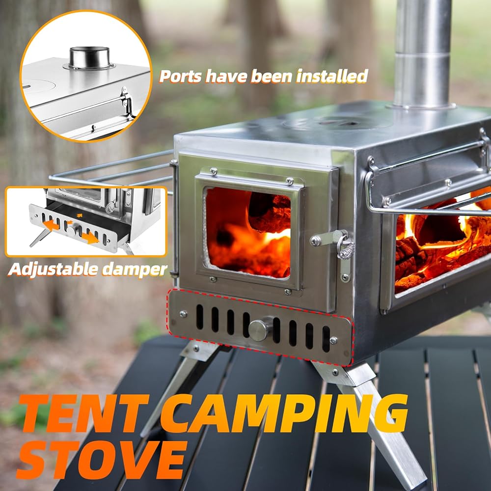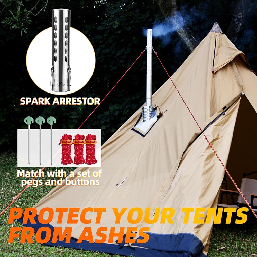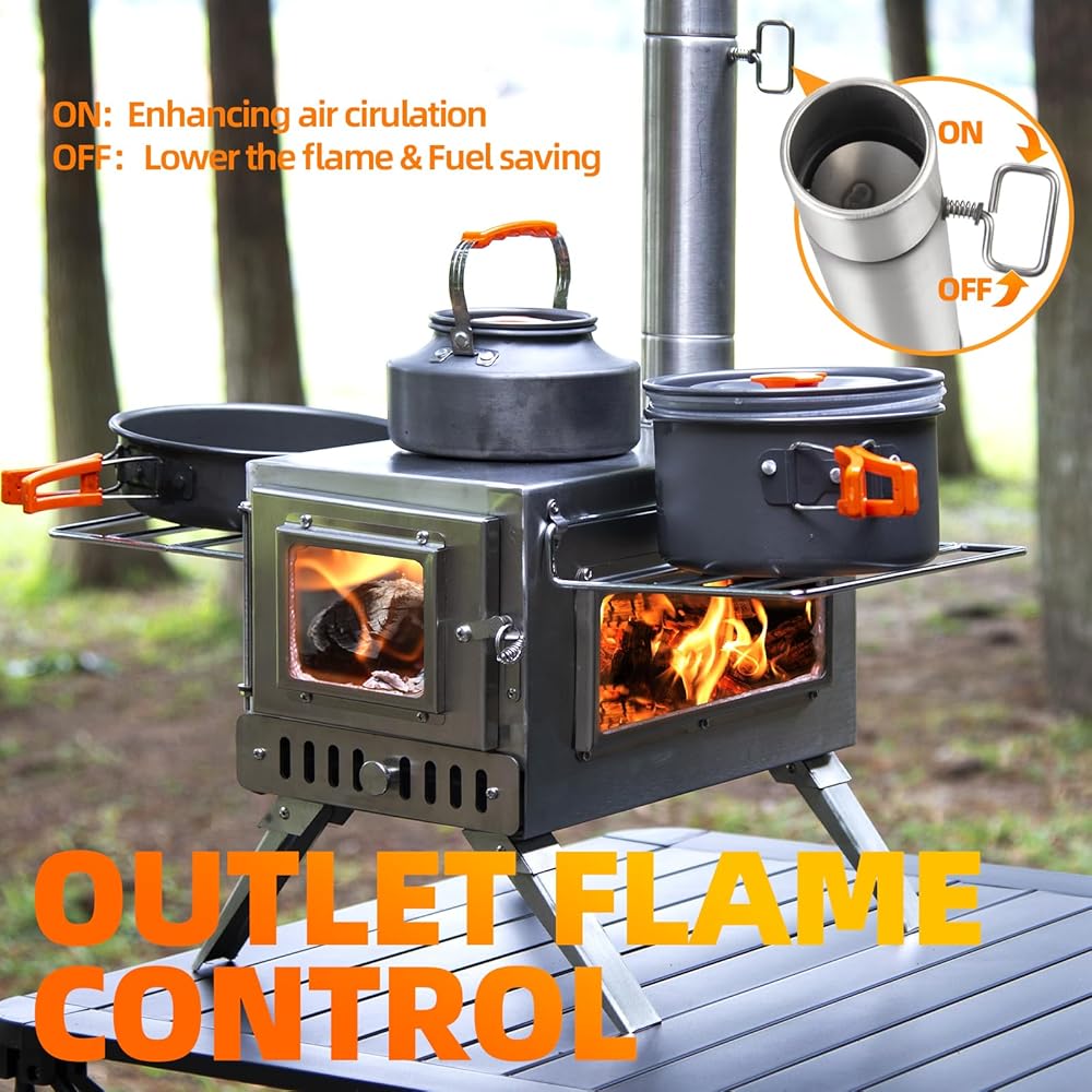 design designable chemney : من أجل تسهيل قابلية النقل ، يتم تقسيم موقد حرق الخشب إلى 7 أقسام ، تتكون من 7 أقسام مدخنة يبلغ طولها 12 بوصة. يمكن تجميعها إلى الارتفاع الذي تريده. يحتوي أحد أنابيب المدخنة على مخمدات تثبيت أخرى لإدارة حجم اللهب ومعدل الحرق