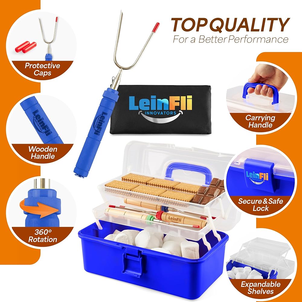 Craving for a sweet, gooey, and crunchy smores? LeinFli presents the ultimate S'mores Kit to satiate your sweet tooth. This kit is not just a box; it's a caddy of joy, laughter, and sweet memories. With an advanced design and premium quality material, our s'more kit is the perfect companion for a fun backyard fire pit adventure or a lovely camping night under the stars. It's time to unleash the marshmallow roasting sticks!