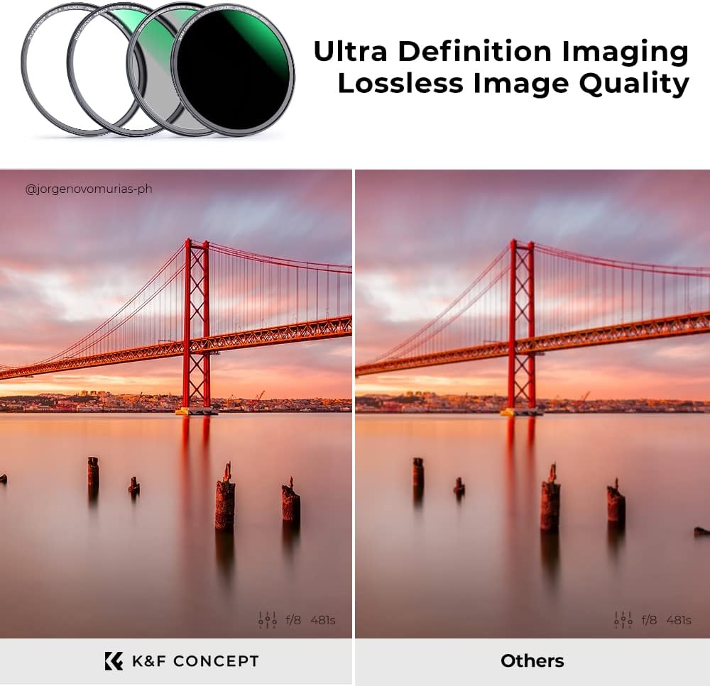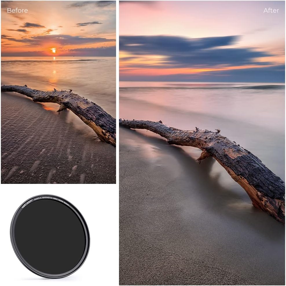【مجموعة تشمل】 مجموعة المرشح هذه تشمل MCUV + CPL + كثافة محايدة ثابتة ND1000 + ثابت ND64 + حلقة محول مغناطيسي + حقيبة مرشح.