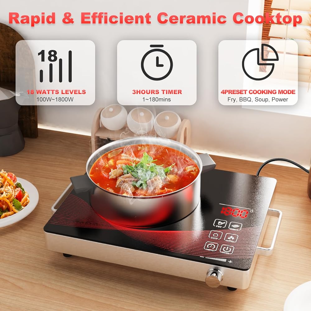 【التدفئة القوية والدقيقة - 2200 واط تحت الحمر بالأشعة تحت الحمراء】 تجربة تسخين سريع ومتسق مع هذا الطهي الكهربائي المفرد 2200W. يضمن عنصر التدفئة بالأشعة تحت الحمراء 7.87 بوصة حتى توزيع الحرارة ، مما يجعله مثاليًا للغليان أو القلي أو الغطس. مع 11 مستويات طاقة قابلة للتعديل ، حقق التحكم الدقيق في درجة الحرارة لجميع احتياجات الطهي الخاصة بك.