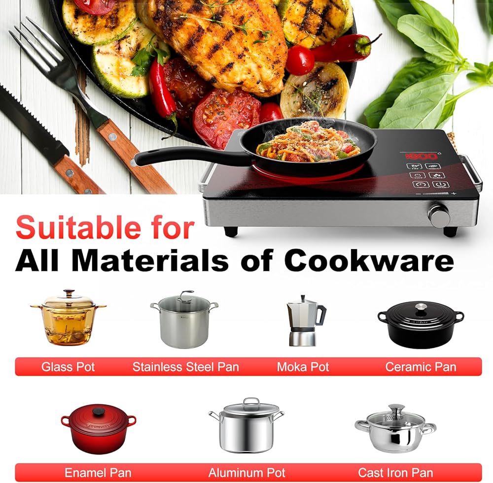 2200 واط صفيحة حارة كهربائية تحت الحمراء ، طهي موقد واحد محمول مع جهاز توقيت ومكافحة تعمل باللمس ، موقد كونترتوب من الزجاج الخزفي ، 11 مستويات حرارة ، طباخ غير حث مضغوط لجميع أدوات الطهي 110V