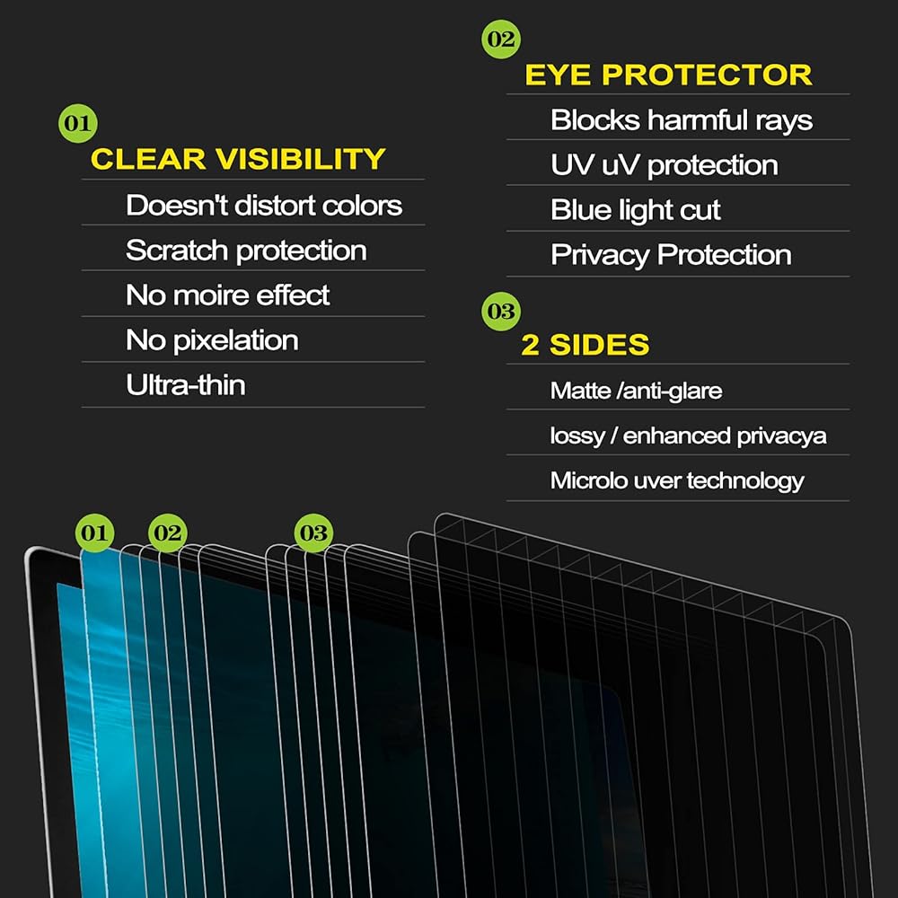 60 ° حماية الخصوصية - تقييد رؤية الشاشة على زاوية ضيقة 62 درجة لمنع زملاء العمل أو المارة من عرض البيانات الحساسة في المكاتب المفتوحة أو المساحات العامة.
