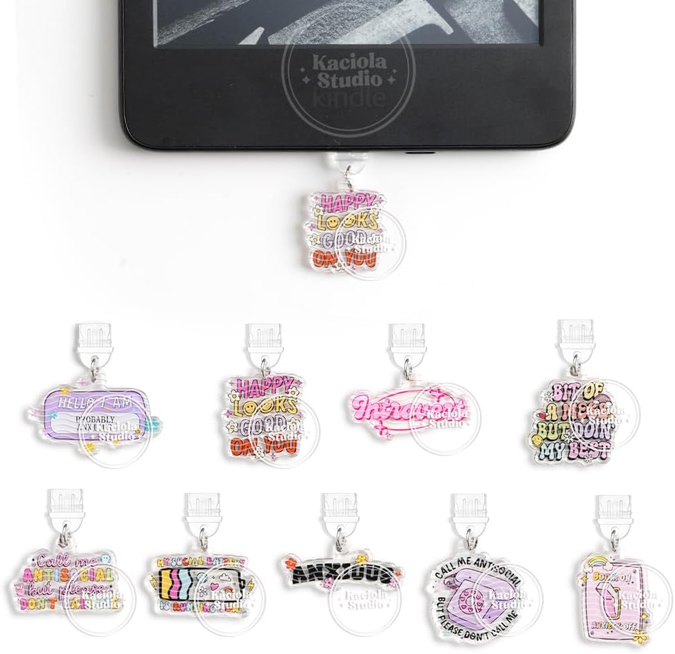 • Soft Silicone Design: Our type C dust plug charm is made of high quality silicone.Not easy to deform, and fully fit the E Reader paper white 11th release. Acrylic dust plug pendant is delicate and lightweight, not easy to fall off. The soft silicone design on both sides will not damage the charging port due to friction