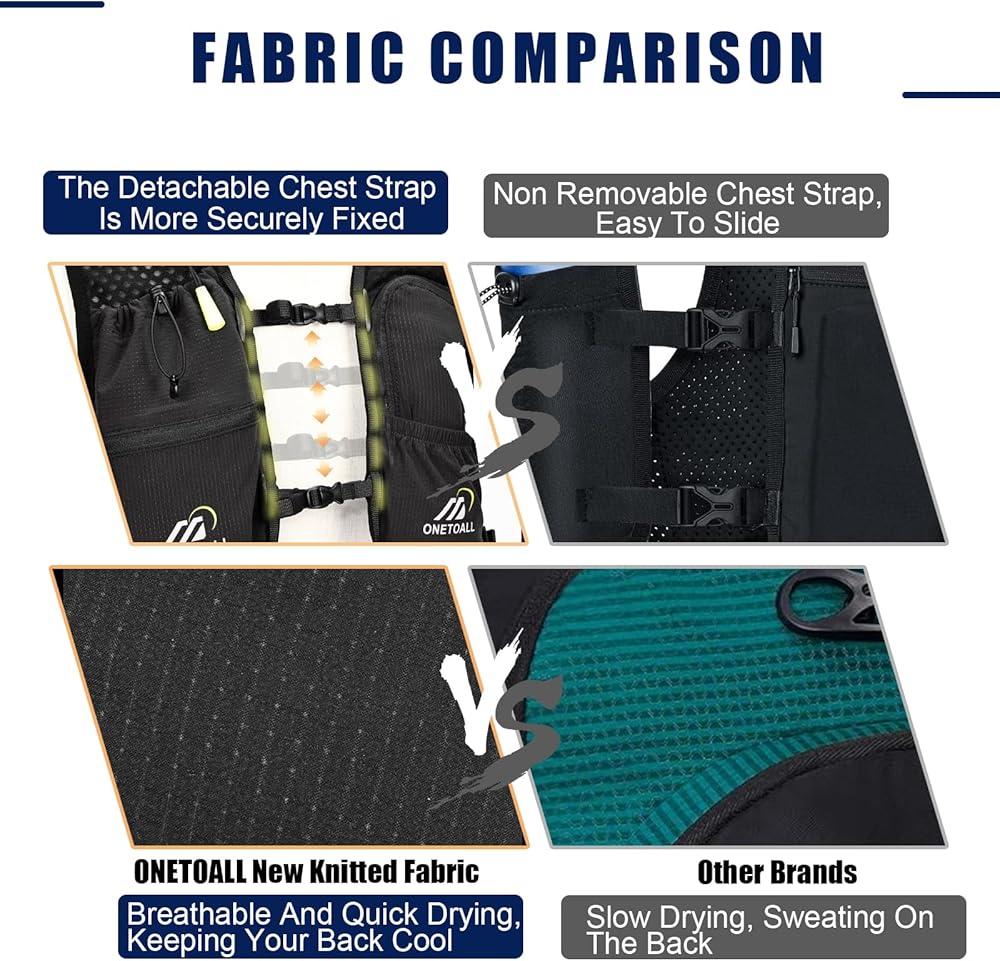 • متعدد الاستخدامات للأنشطة المختلفة: تم تصميم حقيبة الظهر المشي لمسافات طويلة Onetoall للركض ، وركوب الدراجات ، والجري الماراثون ، وعشاق المشي لمسافات طويلة.