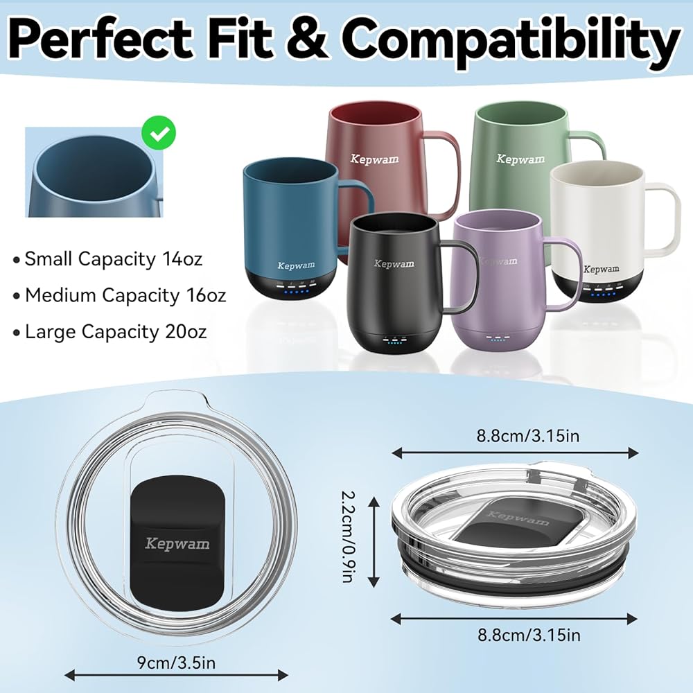 Kepwam Temperature Controlled Smart Mug Coffee Lid: This lid is designed for our self-heating coffee mugs and is compatible with all Kepwam coffee mugs