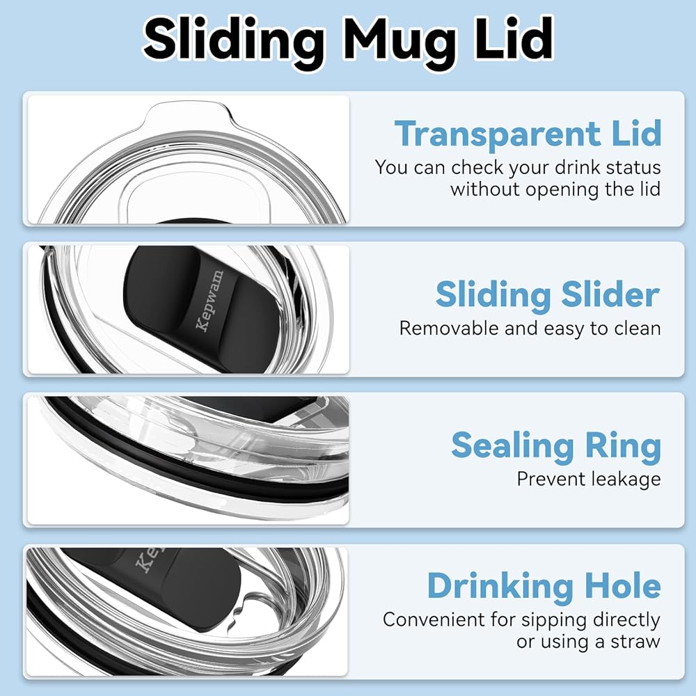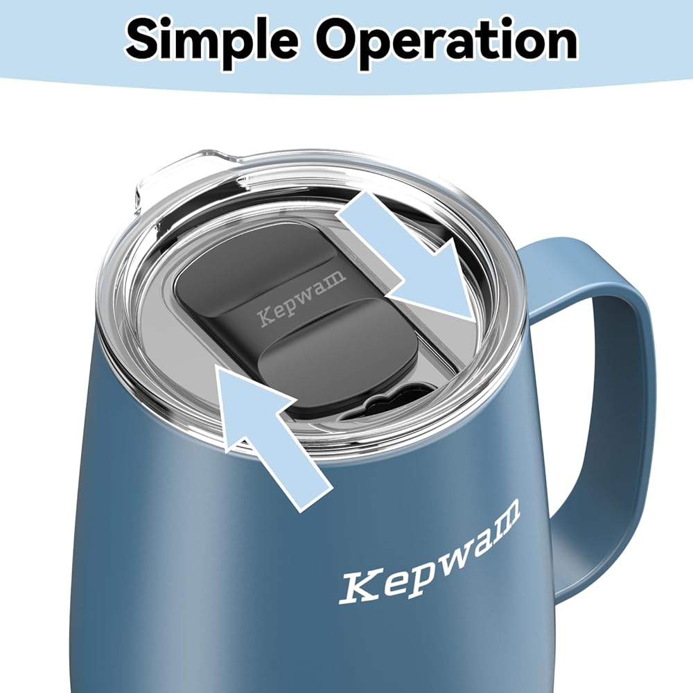 Extended Battery Power: The Kepwam sliding lid helps extend the battery power of the mug, keeping your drink hotter longer and always at the right temperature