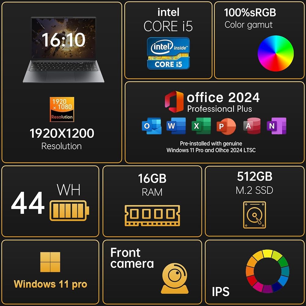 [16 "عرض FHD IPS] يأتي جهاز الكمبيوتر المحمول Windows 11 Pro مع عرض نسبة شاشة عالية الدقة 1600 × 1200 × 1200 مع أي حدود تقريبًا حوله ، وتجربة مشاهدة على مستوى العالم ، وأكثر جمالًا بصريًا ، مما يقلل من ضغط المشاهدة للعين ، وتزويدك بتجربة عرض أكثر راحة.