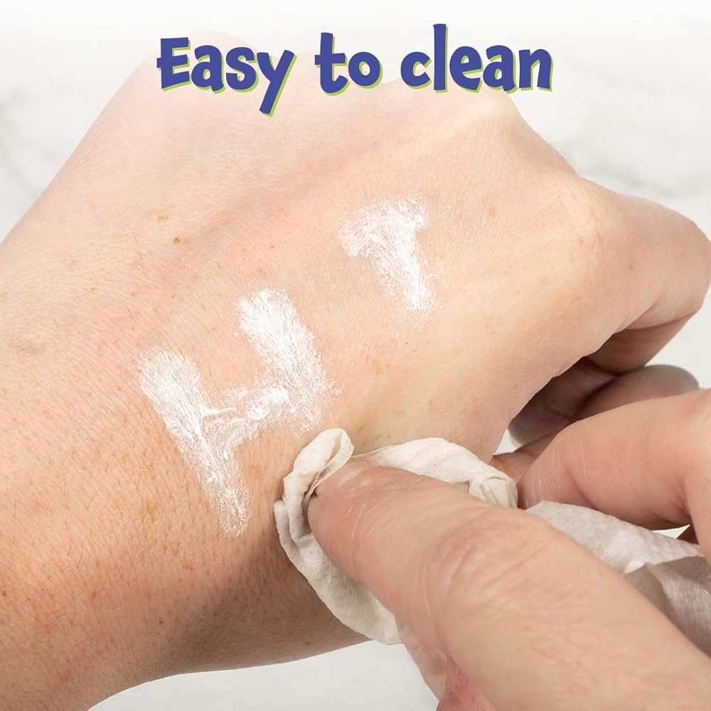 وقت فني خالٍ من الفوضى - الحبر الموجود في وسادة الطوابع هذه يُغسل الجلد بالصابون والماء، مما يجعل التنظيف سريعًا وسهلاً.