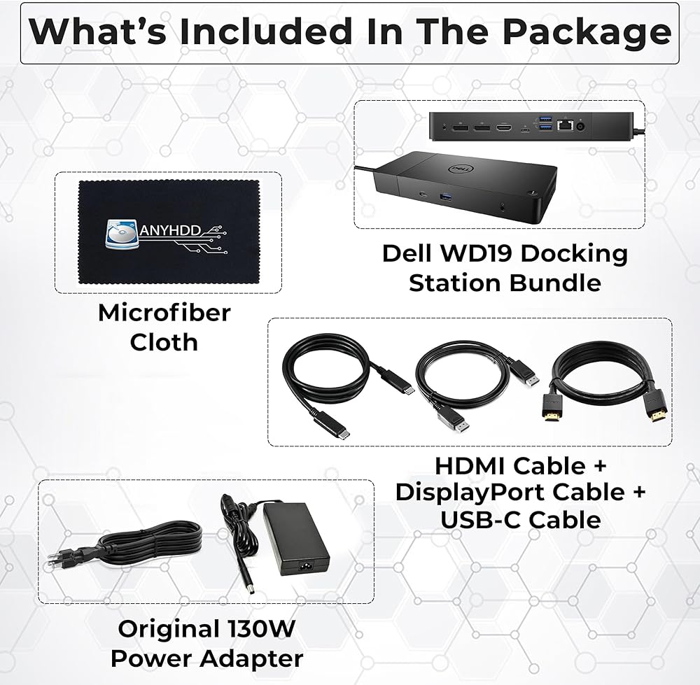 Dell WD19 حزمة محطة الإرساء - Dell Dock مع 130 واط الطاقة Adaper + HDMI كابل + كبل DisplayPort + كابل USB -C + القماش الألياف الدقيقة (متجددة)