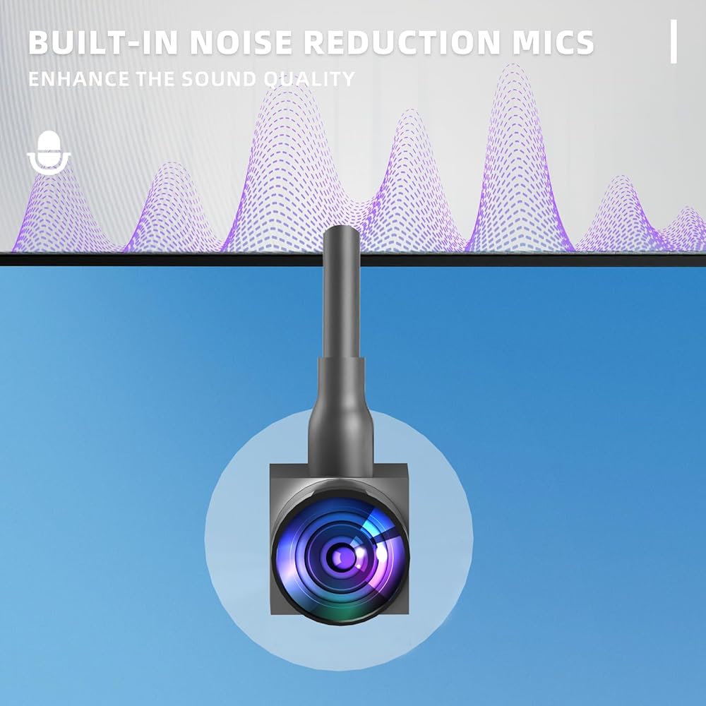 【ميكروفونات إلغاء الضوضاء】 هذه الميكروفونات المدمجة في كاميرا الويب مع تقنية متطورة لتلاعب الضوضاء. يوفر صوتًا واضحًا مع التخلص من ضوضاء الخلفية. تعزز تكنولوجيا العزل الصوتي وضوح الكلام للمكالمات الجماعية الخالية من الهاء والتعليم عبر الإنترنت.
