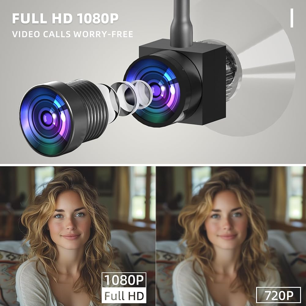 كاميرا ويب الاتصال بالعيون مع جبل الشفط - 1080 بكسل كاميرا شاشة متوسطة التركيز تلقائية مع تقليل الضوضاء ، كاميرا مركزية للضوضاء والتشغيل للتكبير/الفرق/Mac/PC ، مثالية لمؤتمرات الفيديو والعمل البعيد