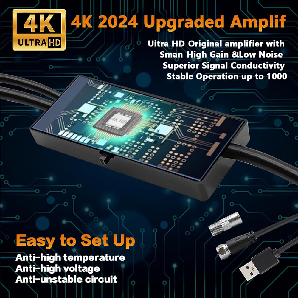 2025 أقوى هوائي تلفزيوني رقمي للتلفزيون الذكي ، 1800+Miles Range Indoor/Outdoor ، 360 ° مع داعم إشارة مكبر للصوت للقنوات المحلية يدعم 4K 8K 1080p 32p كابل محوري كثيف