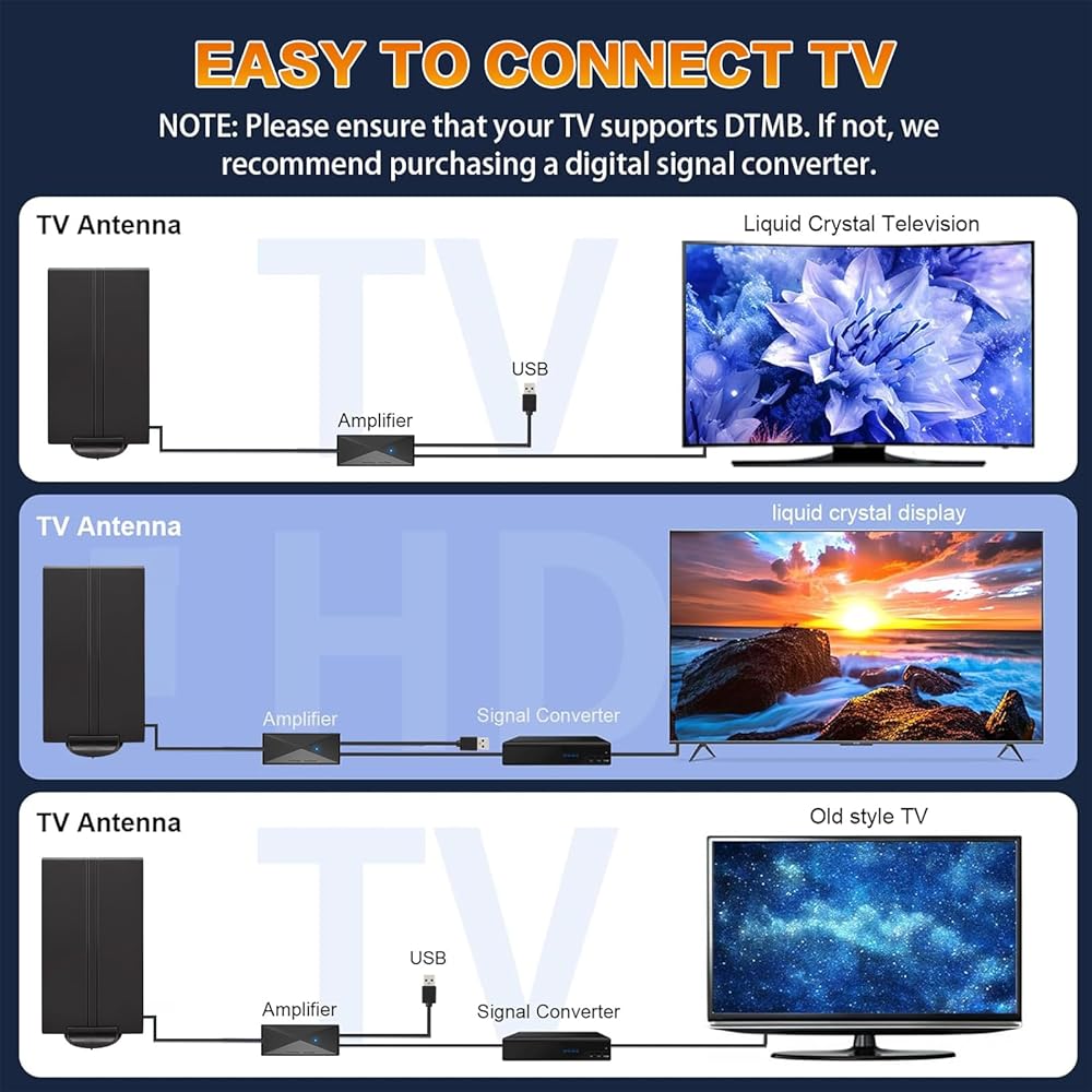 • سهلة الإعداد والتشغيل: إعداد هوائي التلفزيون هو نسيم مع عملية بسيطة من ثلاث خطوات: قم بإلغاء توصيلها ، ومسح القنوات. يقلل هذا التصميم سهل الاستخدام من تداخل الإشارة ، مما يعزز كل من عمر الهوائي وتجربة المشاهدة.