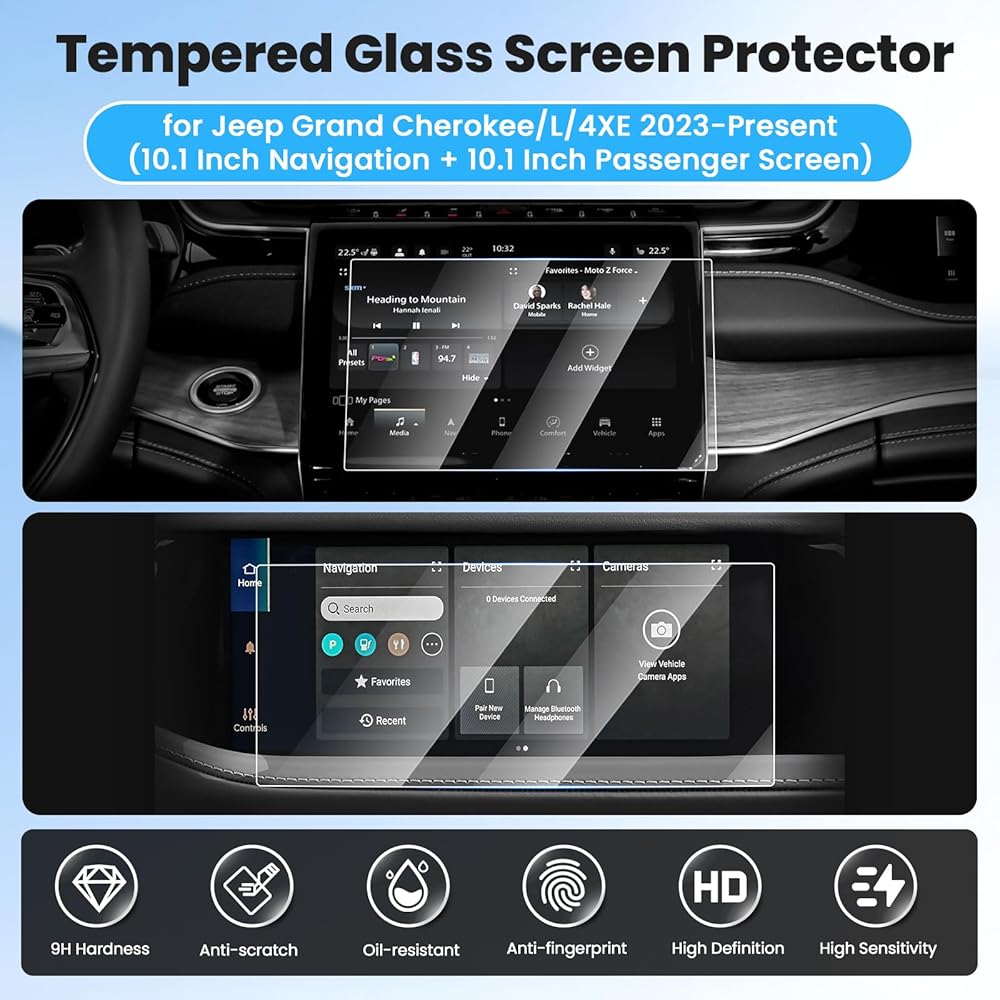 perfect ملاءمة مثالية】 تم تصميم واقيات الشاشة التي تعمل بالاتصال 2pcs خصيصًا لعام 2023 2024 2025 Jeep Grand Cherokee/L/4xe (Laredo ، الارتفاع ، المحدودة ، Trailhawk ، Overland ، Summit ، Summit Reserve) يناسب بشكل جيد للغاية للفحص ويغطي حدود الحافة تمامًا. إنه يعمل بشكل مدهش بحيث لا يمكنك حتى معرفة أنه موجود.