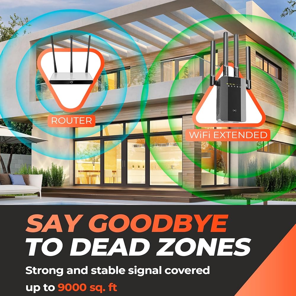 Ultra-Stable and High-Speed Internet: Equipped with 4 external antennas for 360-degree coverage, this WiFi extender penetrates walls and floors, delivering superior connectivity to every corner of your home. As one of the best WiFi extenders and signal boosters, it ensures a seamless internet experience for all your devices.