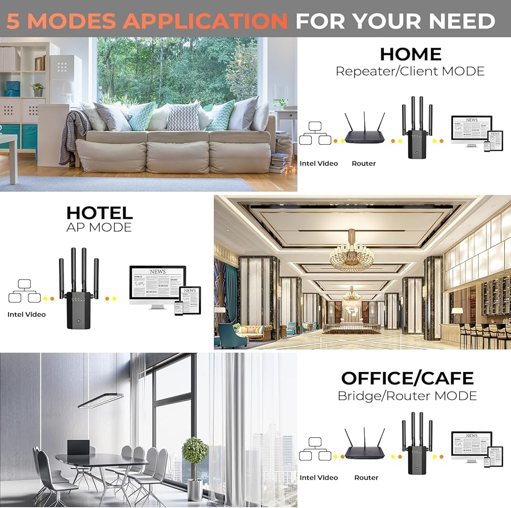5 Modes for Ultimate Flexibility: Offering 5 modes and 1 Ethernet port, this WiFi booster adapts to any scenario. Connect to 69+ devices, from smart TVs to desktops, ensuring ultimate high-speed internet. Its wide compatibility with most routers and devices makes it the versatile solution for all your networking needs.