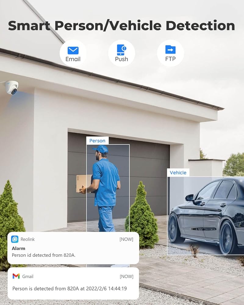 Reolink 4K Poe NVR 8 قناة تم تثبيتها قبل 2TB HDD ، 4K Ultra HD Poe Outdoor Cameras مع الكشف الذكي ، حزمة RLN8-410 NVR مع RLC-810A و RLC-820A