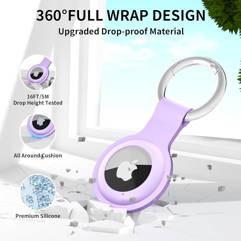 Shockproof Silicone Material: Made from flexible, waterproof silicone, this Air Tag holder with keychain is built to absorb shocks and bumps.Its soft, durable material helps cushion your Air Tag from pressure or impact, keeping it safe from everyday wear and tear.