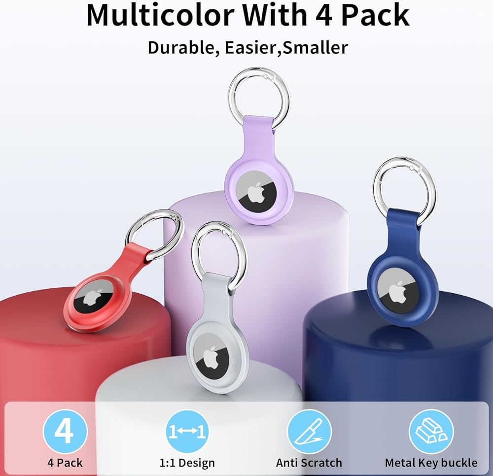 4-Pack Air Tag Cases:This set comes with four Air Tag cases in Red, Blue, Pink, and Gray—great for mixing and matching.