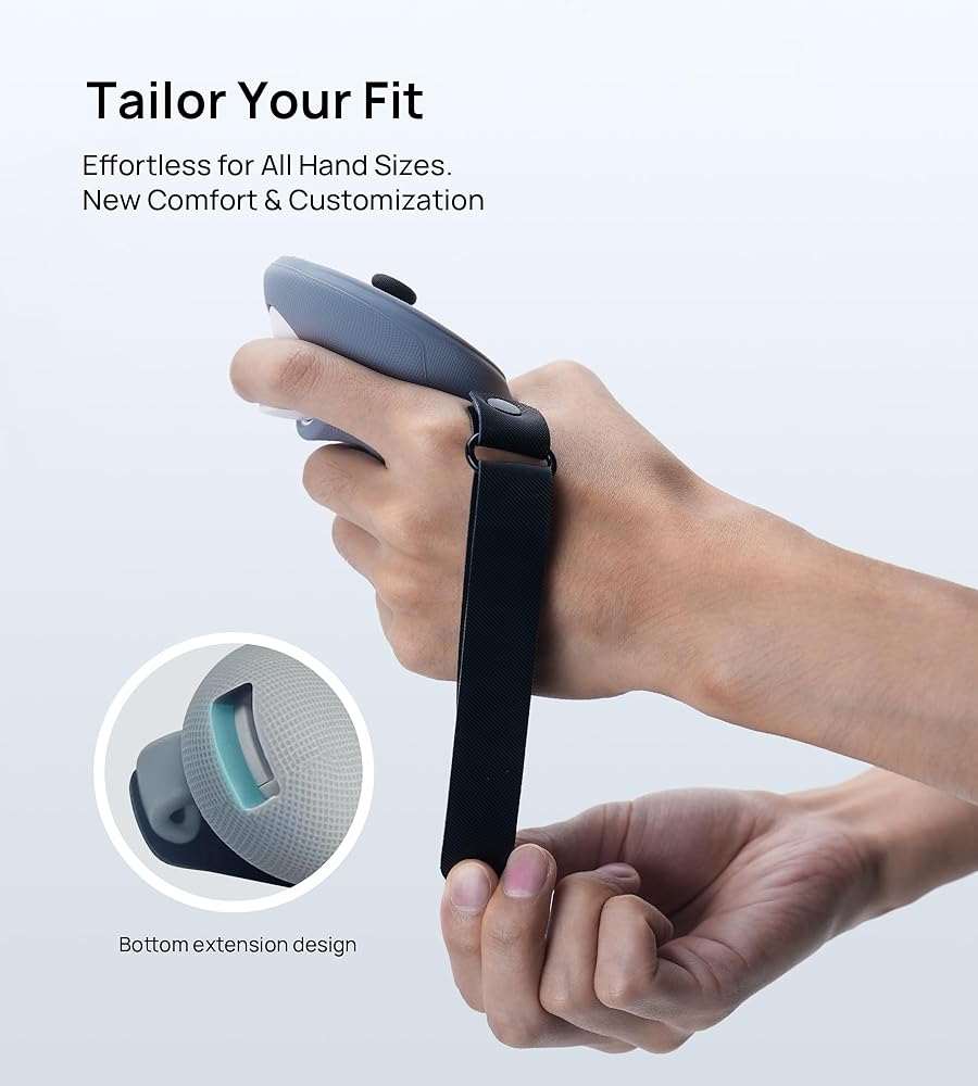 التصميم المريح وحزام آمن: توفر القاعدة السميكة قبضة مريحة لأيدي أكبر ، في حين أن حزام الفيلكرو القابل للتعديل يضمن أمانًا إضافيًا ، مما يمنع قطرات عرضية أثناء اللعب مع Quest 3 Controller Grips