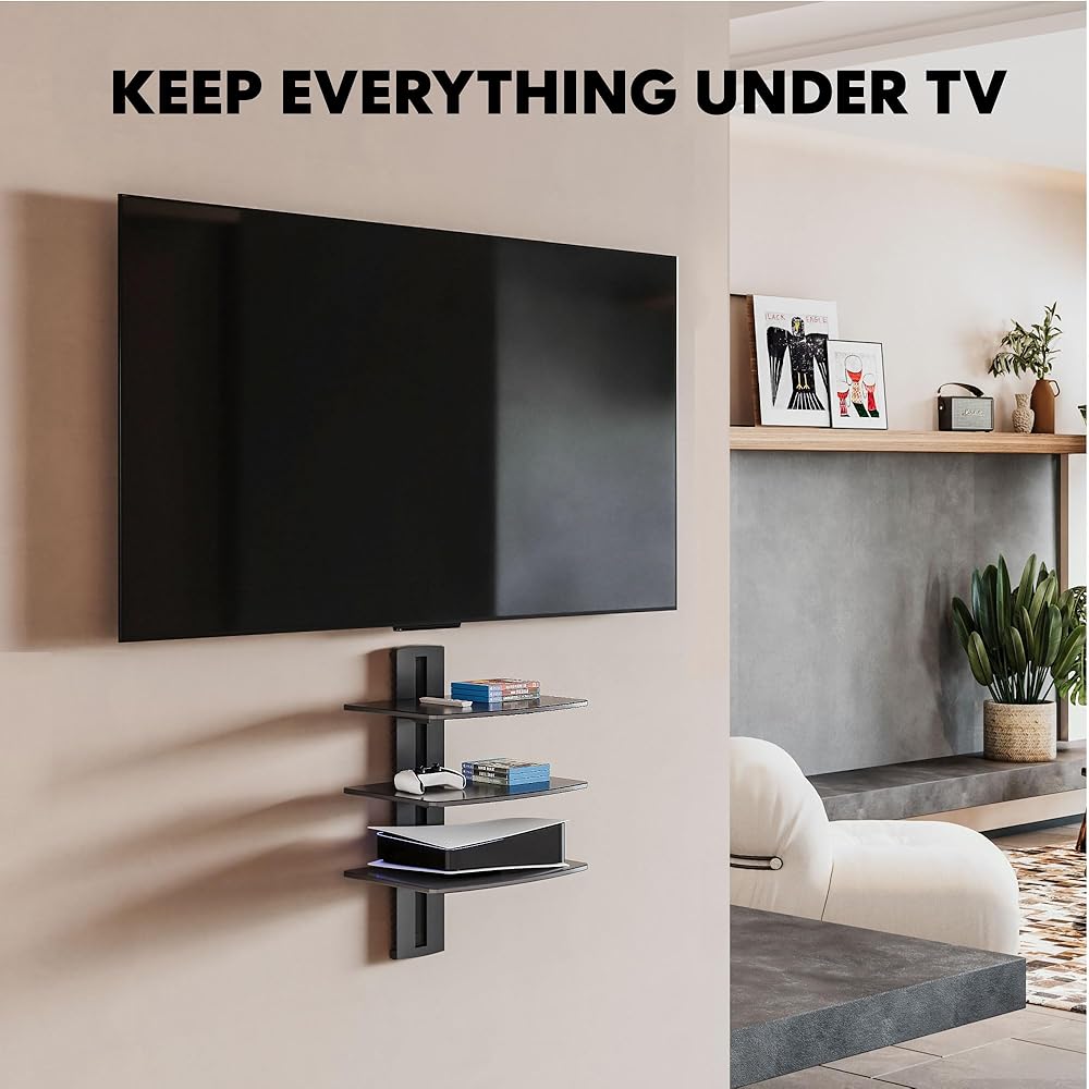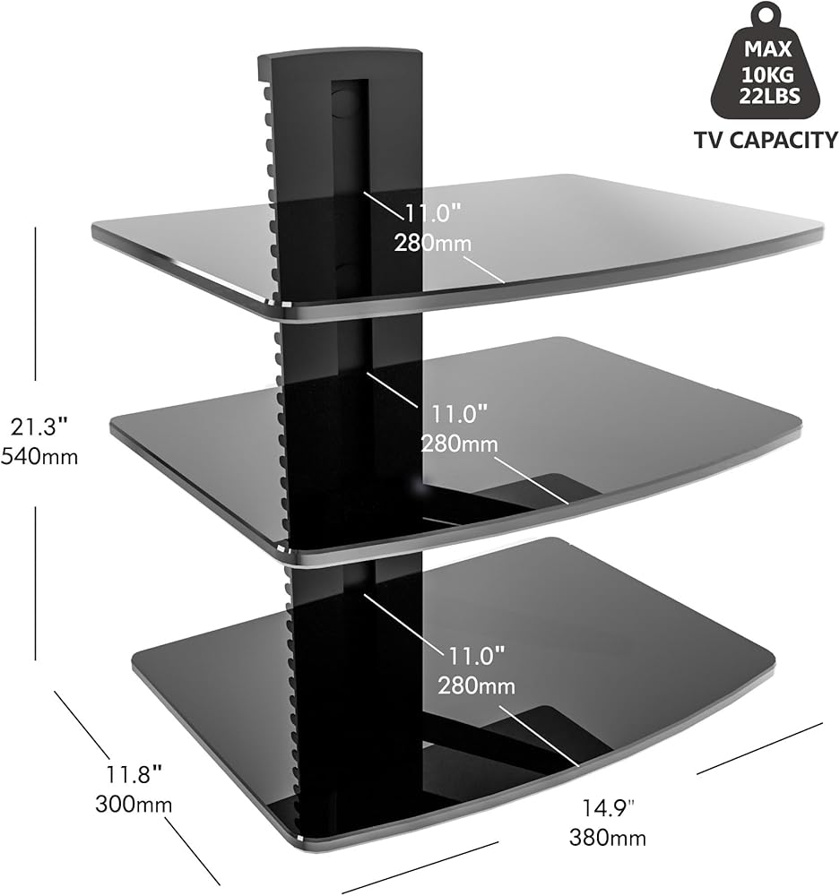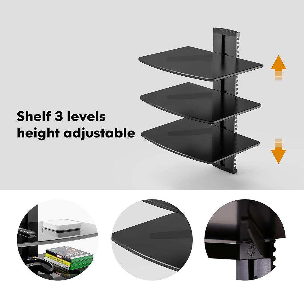 الاستخدام الوظيفي متعدد: يمكن استخدام هذا تحت الرف التلفزيوني كجرف DVD. بالنسبة إلى Xbox ، مكبرات الصوت المحيطة ، وصناديق القمر الصناعي/الكابلات وأي مشغل وسائط تريده. أو بصفته رف تخزين حائط ، يعد أيضًا خيارًا جيدًا