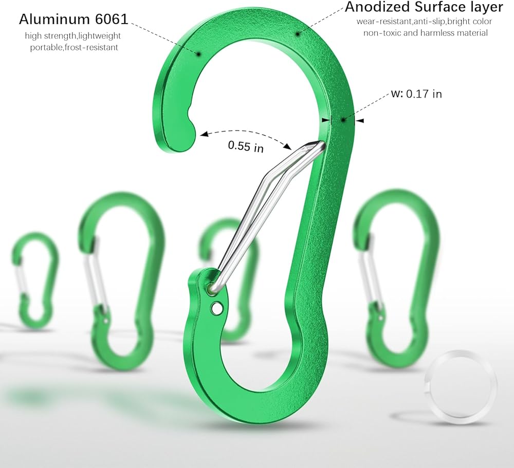 • يشمل المنتج: 2 "Carabiner Clip (20 pcs) وخواتم فولاذية 30 مم (20 قطعة).