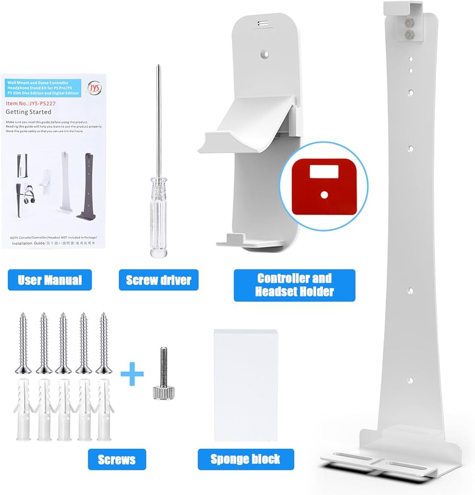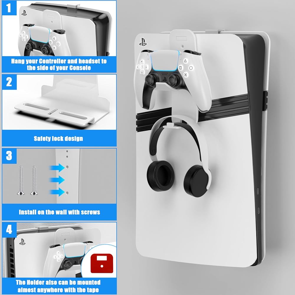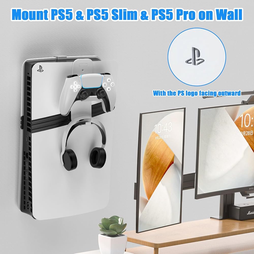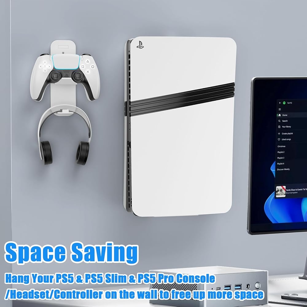 【لتوفير المساحة】 قوس MOUNT BRACKET PS5/PS5 SLIM/PS5 PRO PRO على PlayStation 5 Slim و Controller و Pulse 3D Wireless Headset أعلى ، قبالة مكتبك. وفر مساحة محدودة ، وتقليل التصادمات ، وحماية أفضل PS5/PS5 Slim/PS5 Pro والملحقات. وستحصل على منطقة لعب منظمة وتزيل الفوضى لإلقاء نظرة نظيفة.