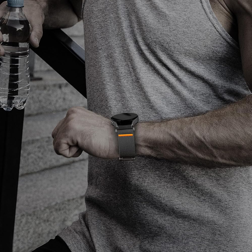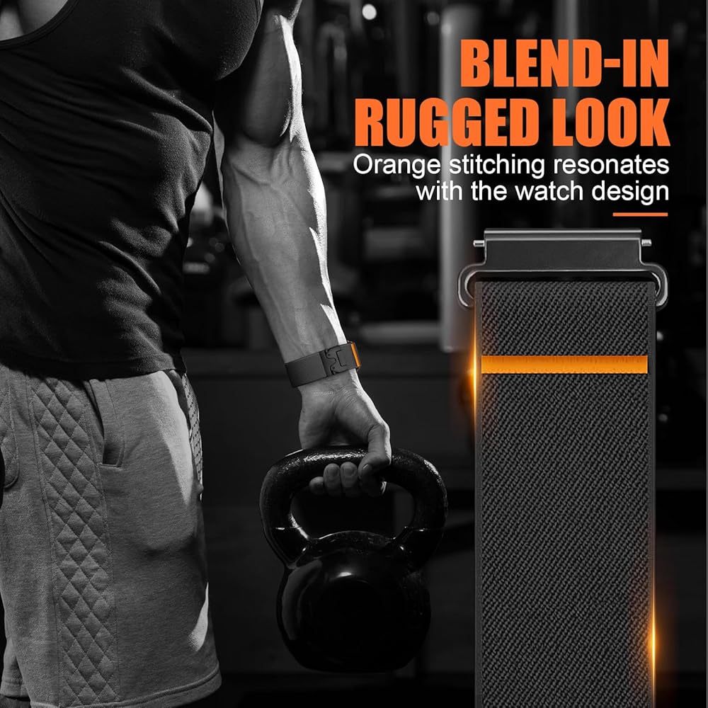 • التصميم الفريد والتثبيت السهل: حلقة منفردة من Nylon Solo for Galaxy Watch 4 هي بعناية يدويًا من قبل الحرفيين ، مع تصميم غرز برتقالي جذاب ، يوضح ثقتك وروحك المغامرة ، مما يجعلك تبرز من بين الحشد. تم تجهيز كلا طرفي شريط الساعة بدبابيس ، والتي يمكن أن تكون مغلقة بدقة وحزم على واجهة الساعات الذكية ، والتي من السهل وتثبيت التثبيت.